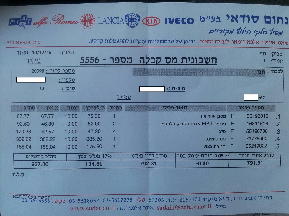 כל החלפים המקוריים נקנו אצל סודאי: