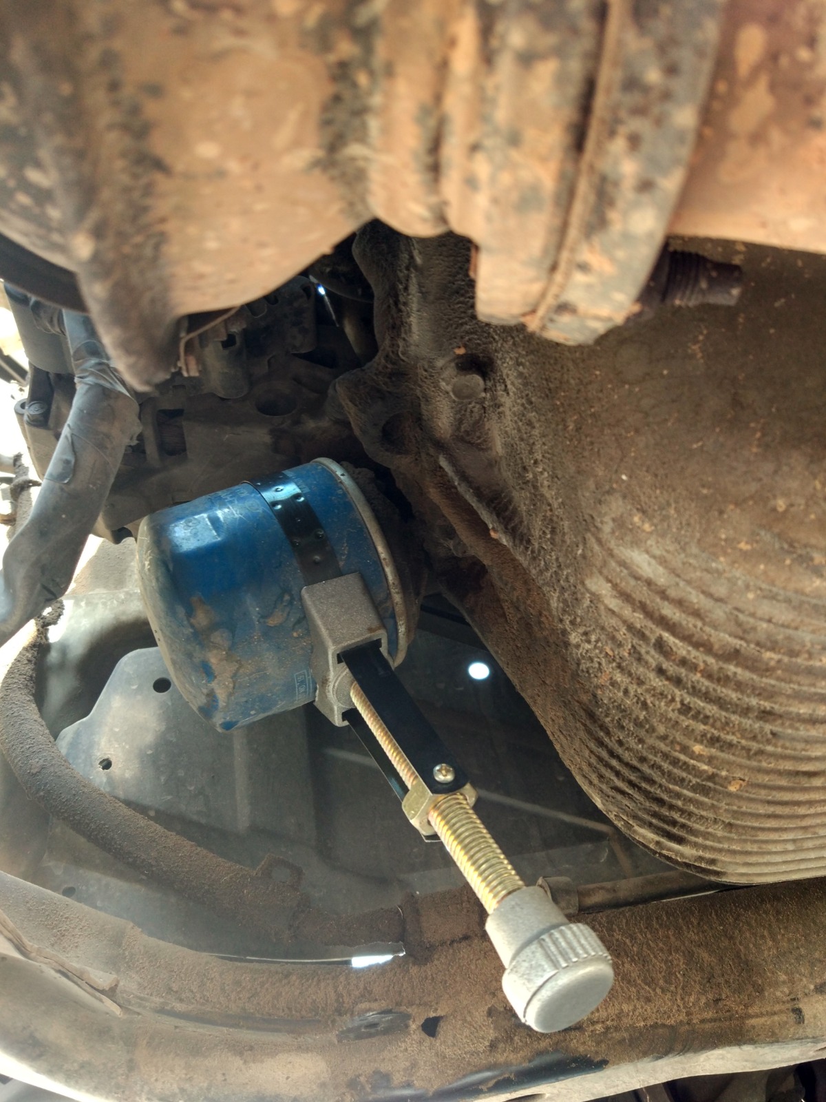את המסנן יש לפתוח על כלי ייעודי כמו עכביש או מפתח סרט. באלנטרה אין כ"כ מקום להכנסת עכביש, מה גם שהמסנן של יונדאי מסתיים במין כיפה עגולה כזו המונעת מזרועות העכביש לתפוס את דפנות המסנן כראוי.