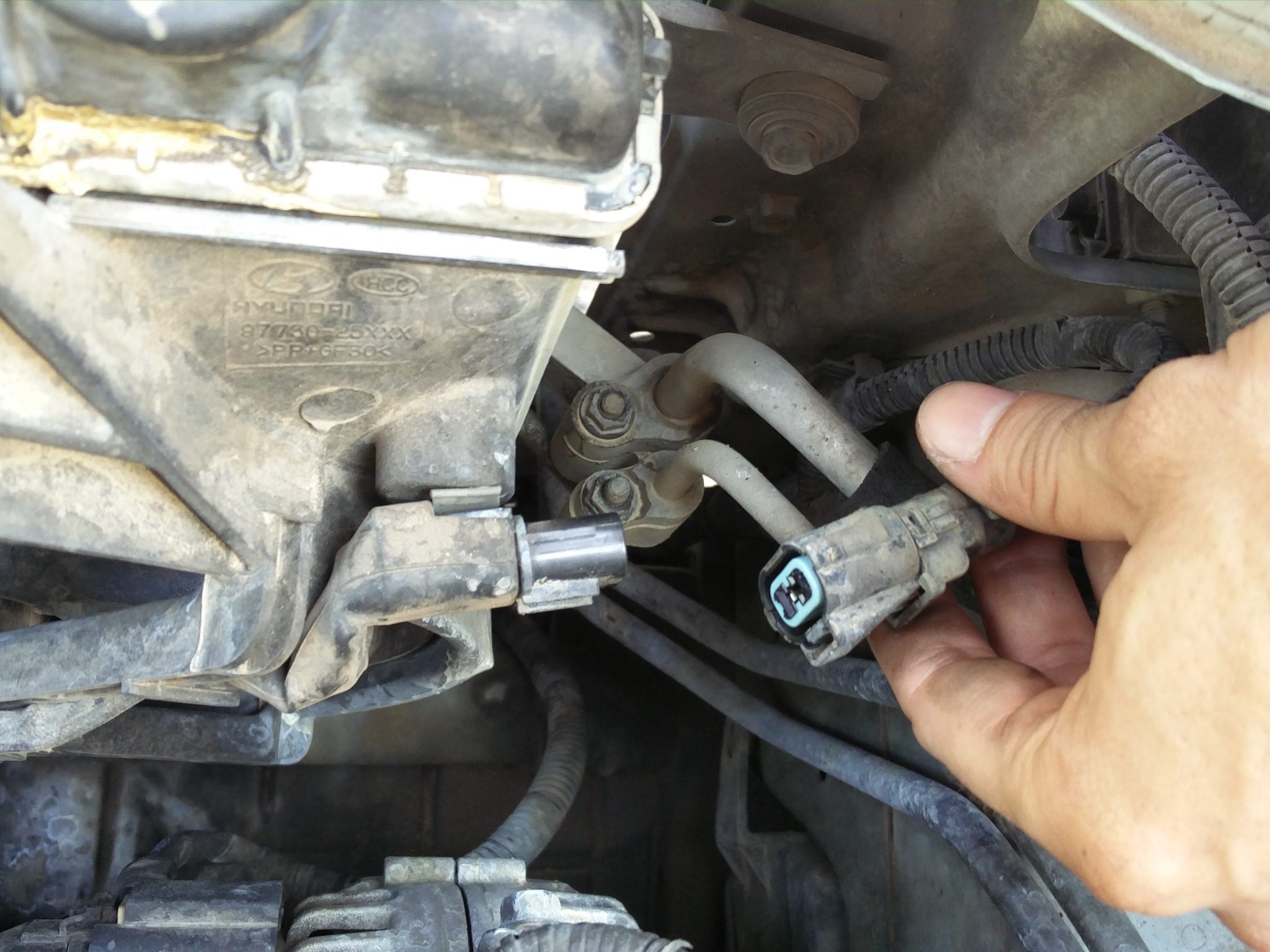 מתחילים בפירוק צינור יניקת אוויר. 2 ברגים 10 מ"מ והוא בחוץ. גם בכל שאר העבודה משתמשים בבוקסה 10, מומלץ ראצ'ט רבע.