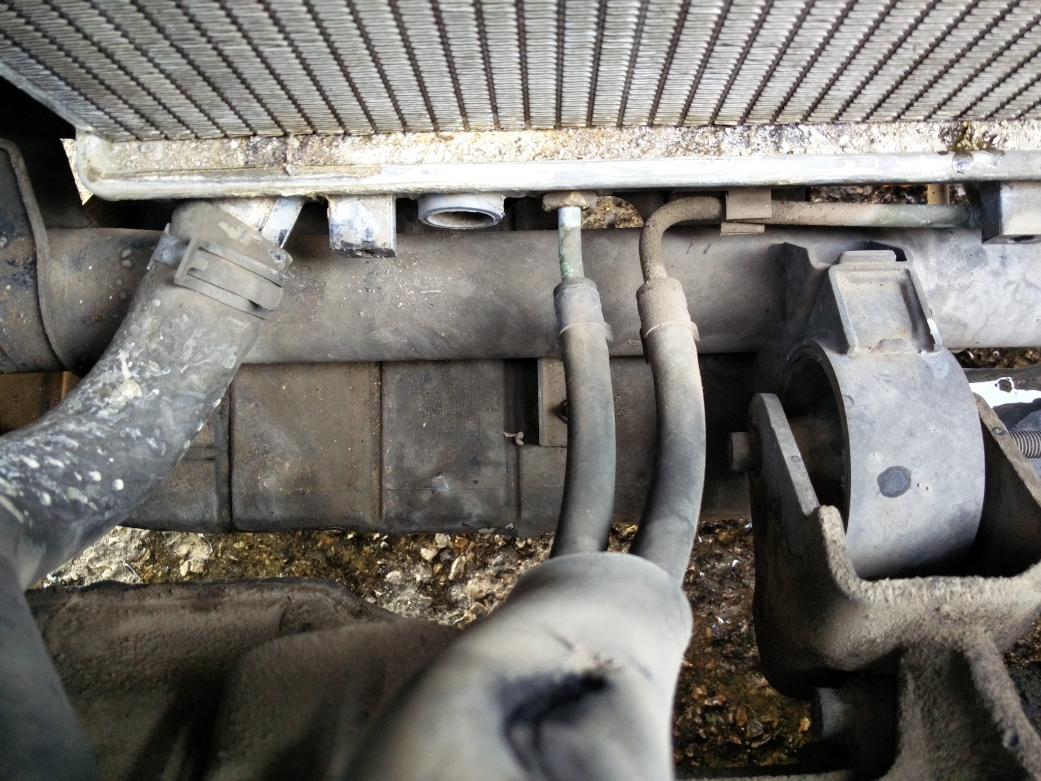 עכשיו הדבר היחיד שמחזיק את הרדיאטור זה 2 התושבות העליונות. מפרקים אותן והרדיאטור נשלף מלמעלה.