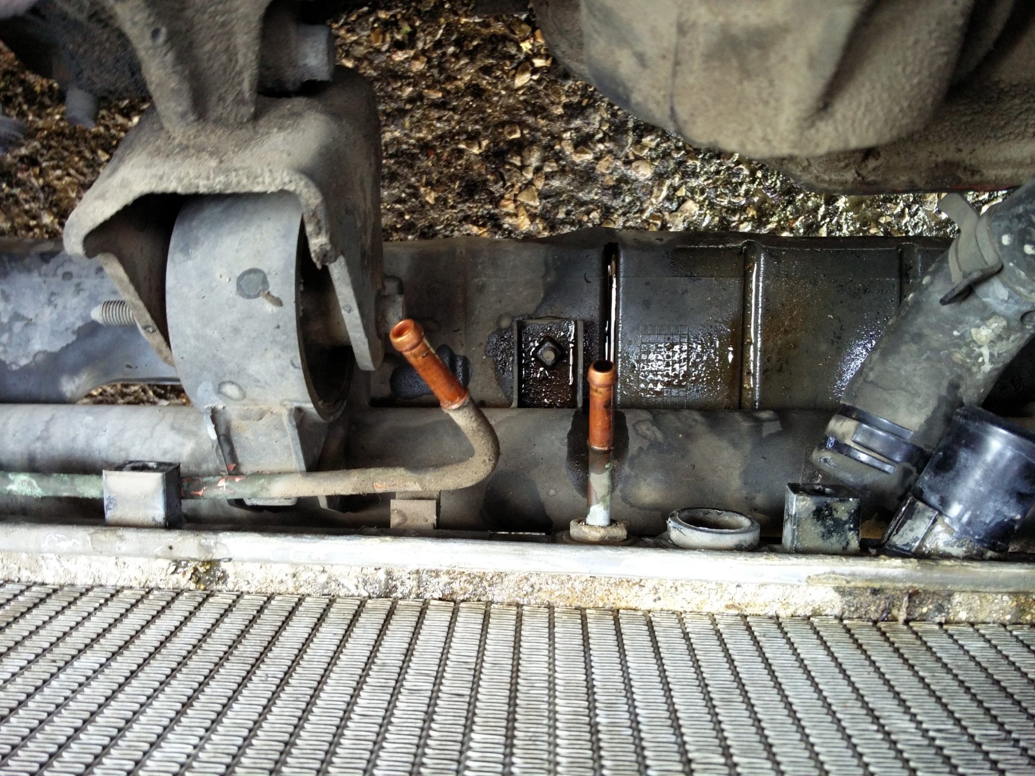 לצינור התחתון יש באנד לחיצה, בעזרת פלאייר כלשהו לוחצים ומזיזים אותו אחורה. מנתקים את הצינור. אותו דבר עושים לבאנדים הקטנים של צינורות שמן הגיר.