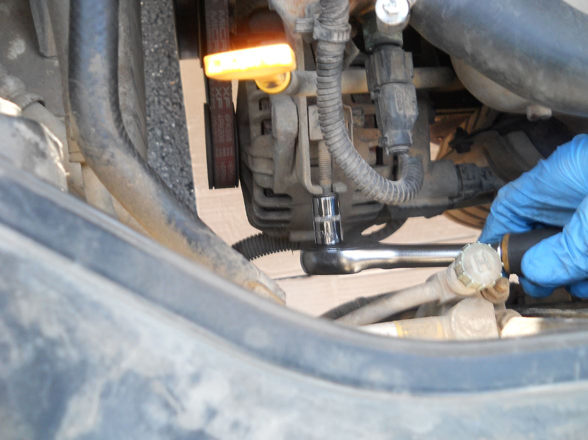 בעזרת בוקסה 12 נשחרר מעט את בורג הנעילה. כמה סיבובים, עד שנרגיש שחתיכת הברזל שעליה הוא יושב משוחררת. הגישה לא נוחה ותצטרכו הרבה סבלנות