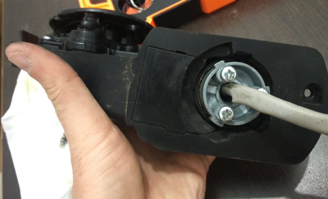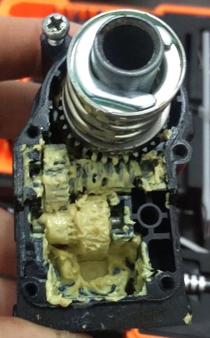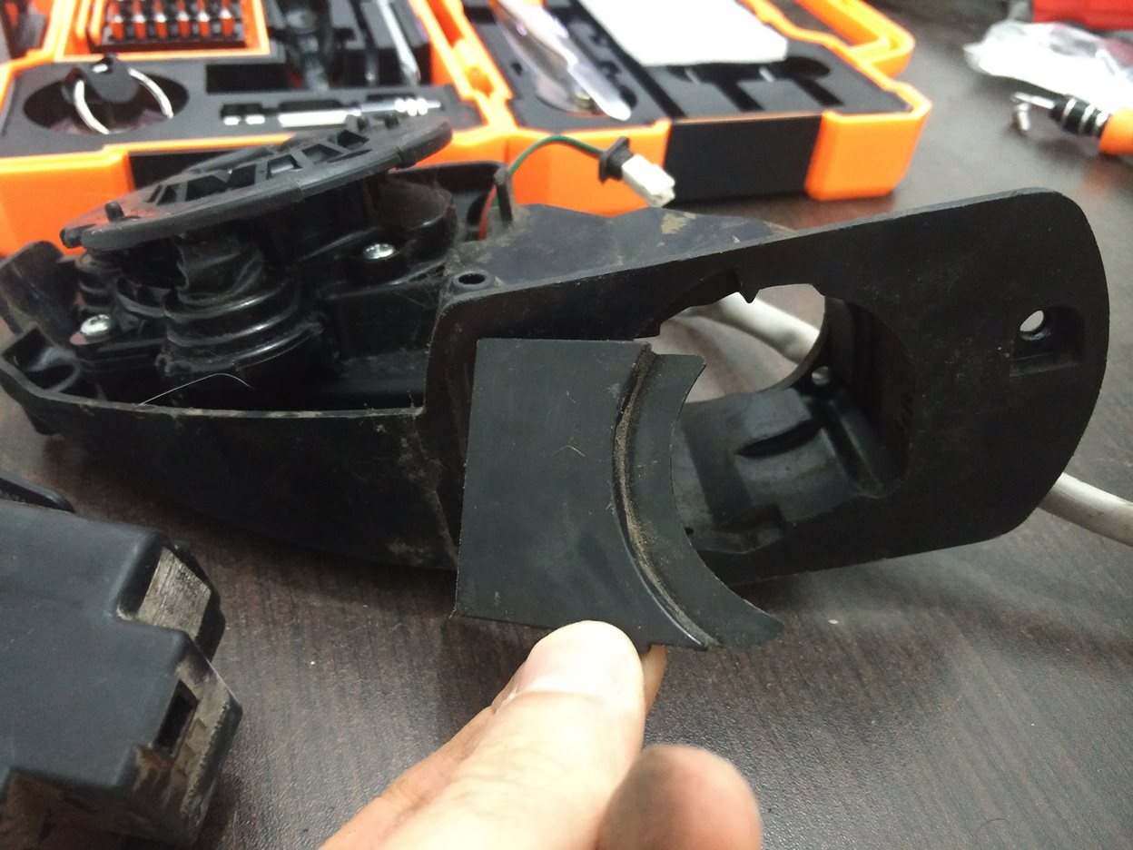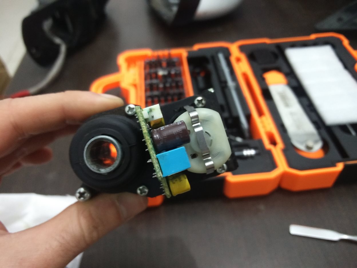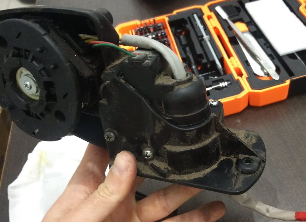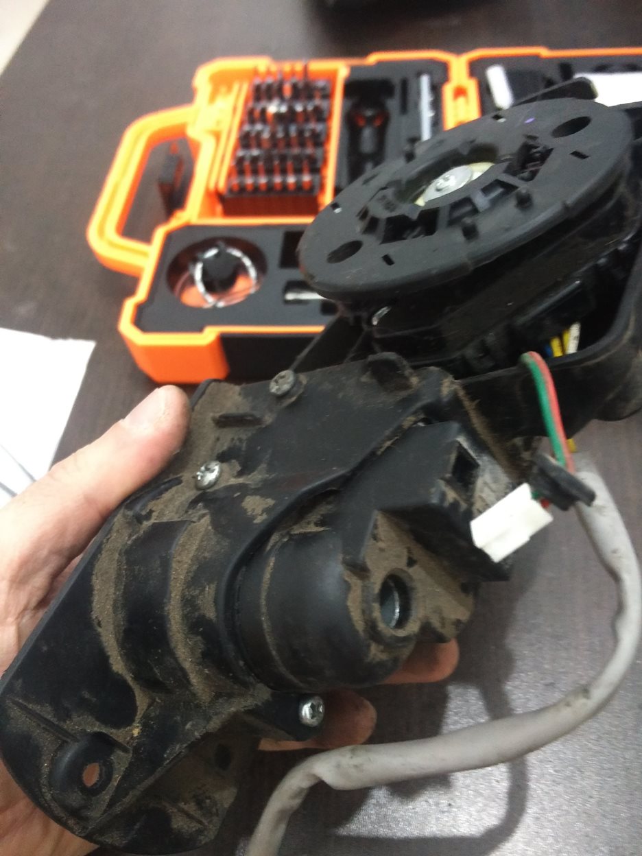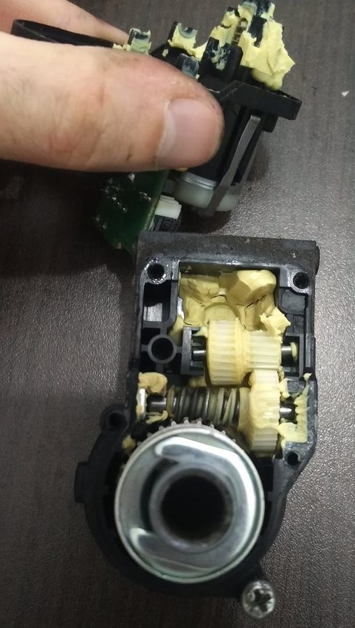 8. בשלב הזה ברור לגמרי מקור הכשל. גלגל השיניים מפלסטיק לא עמד בעומס, נשבר וכעת הוא מחליק על הציר.