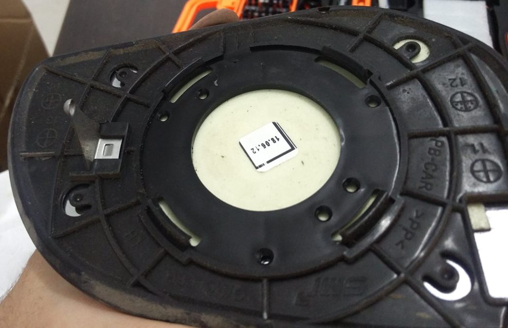 1. קודם כל מפרידים את הזכוכית ממנגנון כיוון המראה. ניתן לראות בתמונה השניה שלזכוכית 4 שיניים מפלסטיק שאוחזות את מנגנון כיוון המראה. יש להטות בעדינות את הזכוכית לצד (אני הטתי פנימה ולמעלה), להכניס בזהירות חפץ דק וארוך ולהפריד בין הקליפסים למנגנון כיפול המראה. אני עשיתי זאת בעזרת סכין אוכל פשוטה.