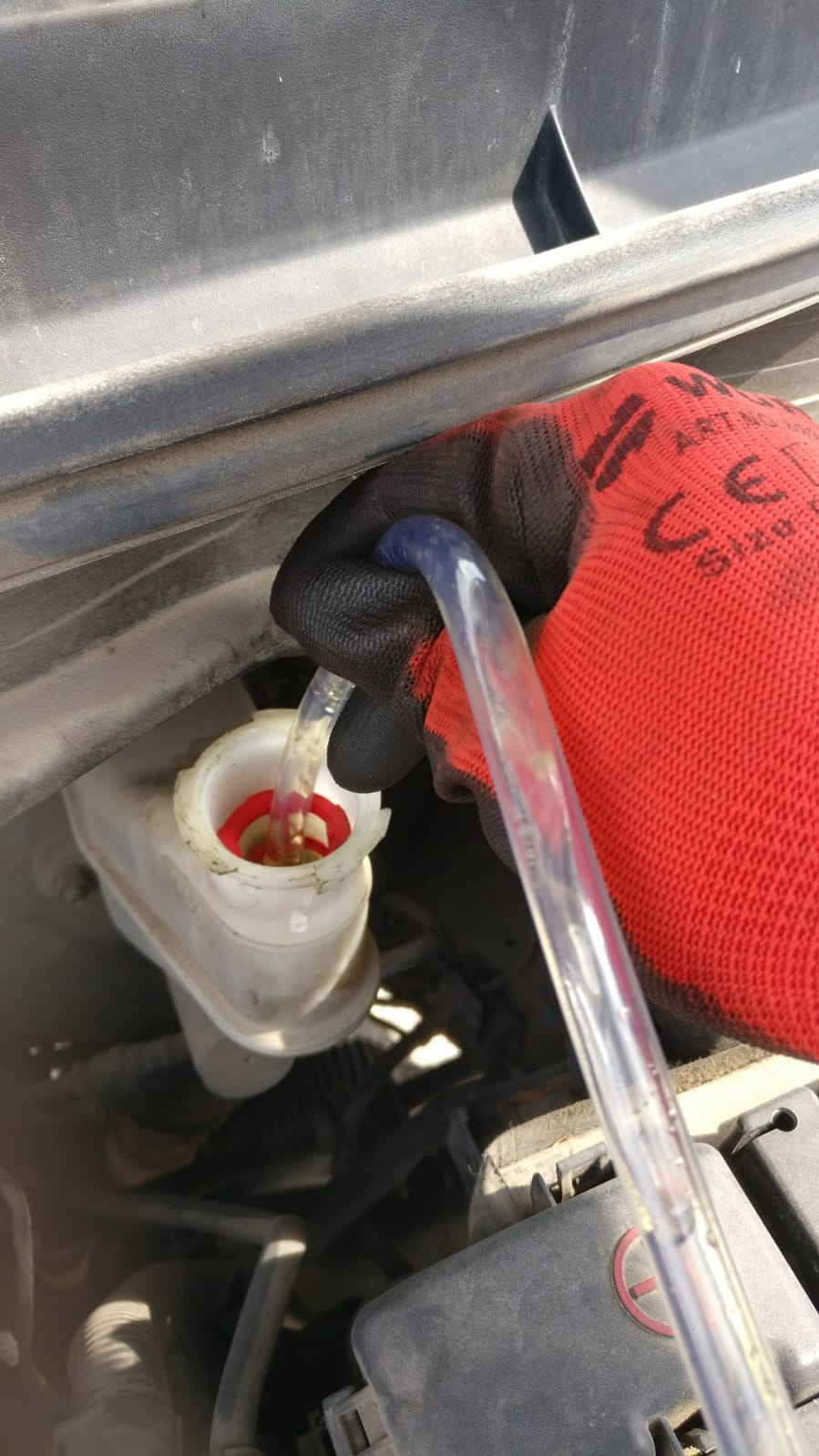 כאשר דוחפים את הבוכנה מפלס הנוזל בלמים עולה, על כן בשלב הראשון נפתח מכסה ומנוע ונפתח את מיכל נוזל הבלמים. במידה והמפלס של נוזל הבלמים גבוה נשאב מעט נוזל.