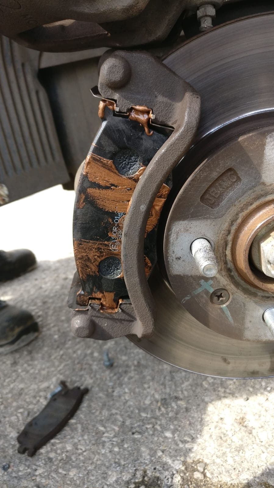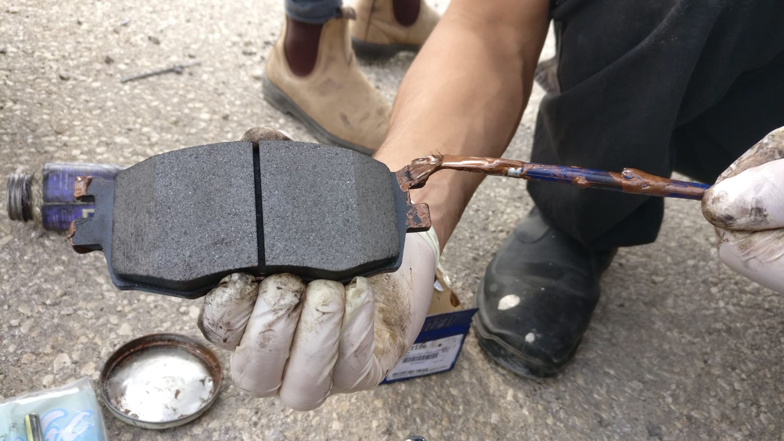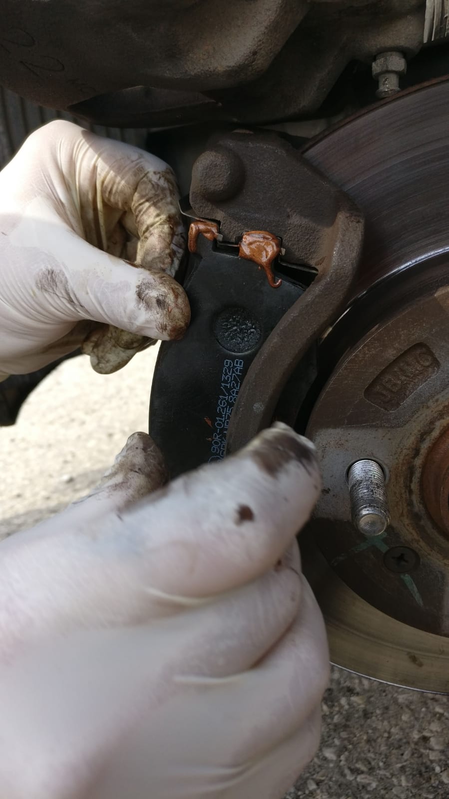 ואת הרפידה החיצונית שנוגעת בקליפר עצמו נגרז עם מעט גריז נחושת בנקודות המגע: