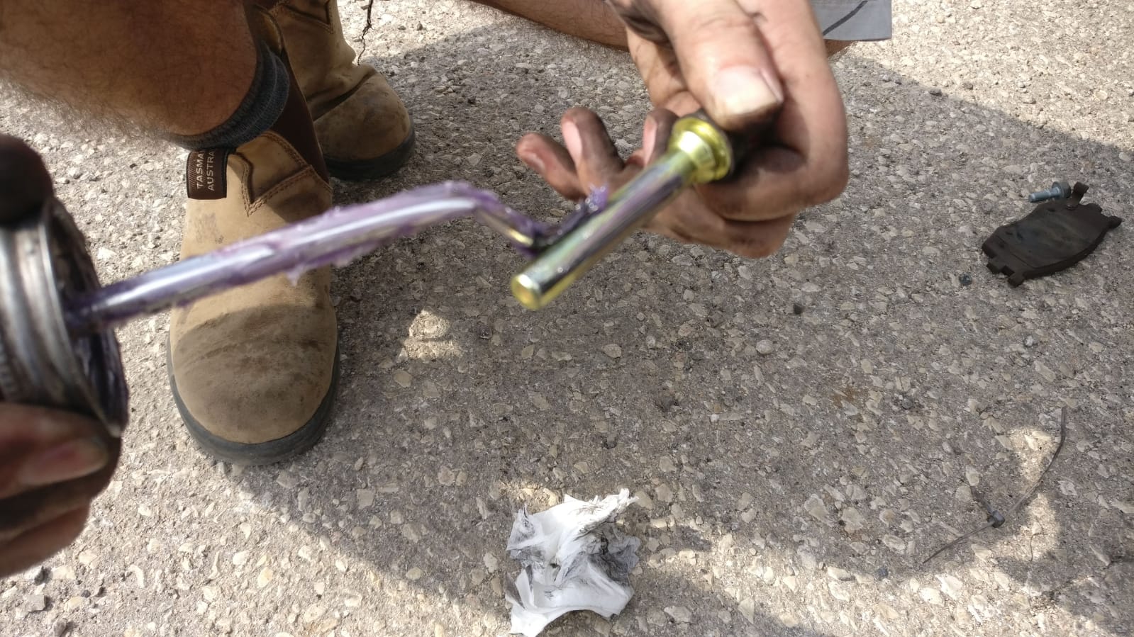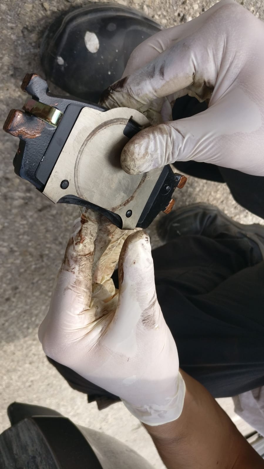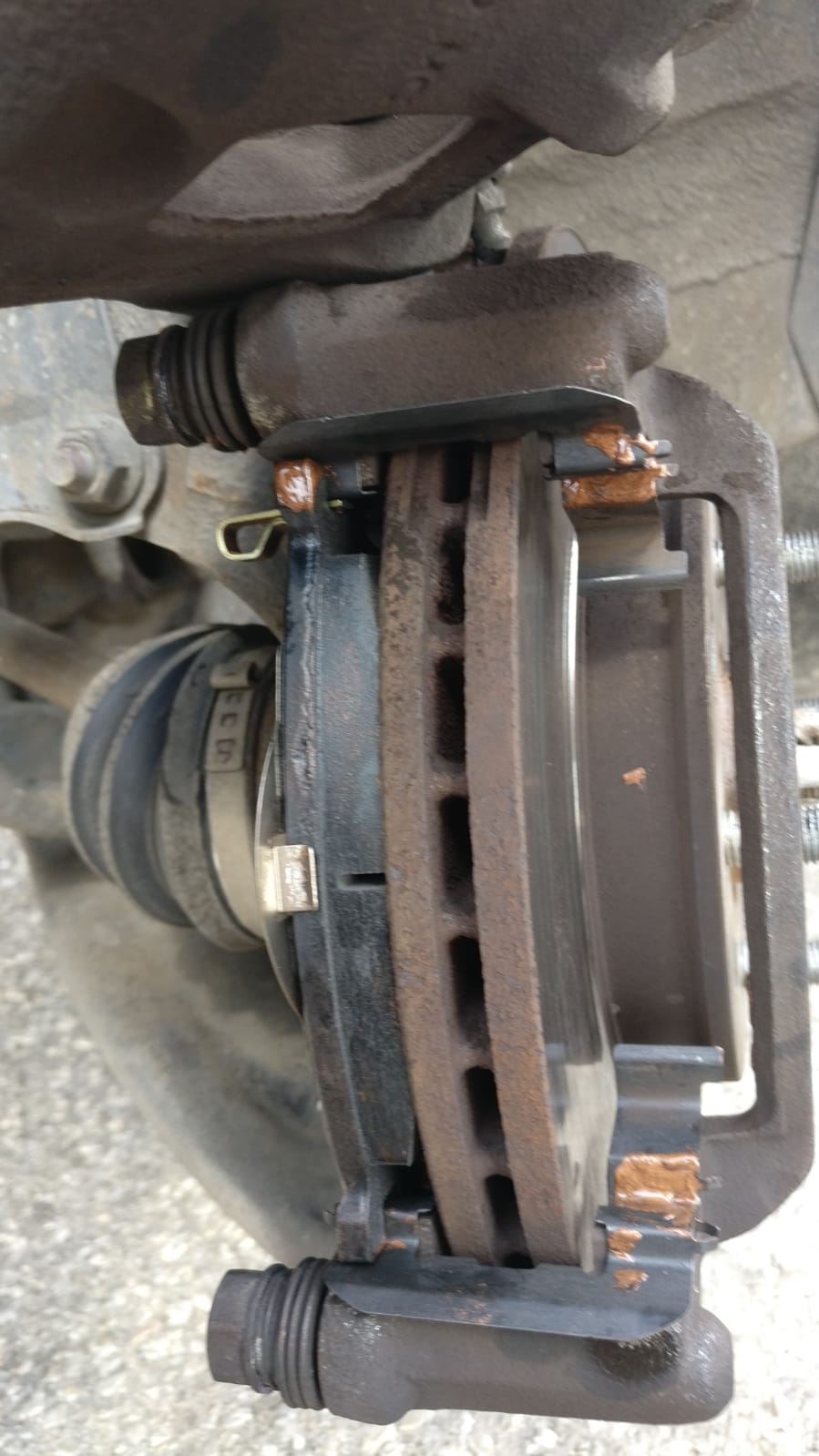ואת הרפידה החיצונית שנוגעת בקליפר עצמו נגרז עם מעט גריז נחושת בנקודות המגע: