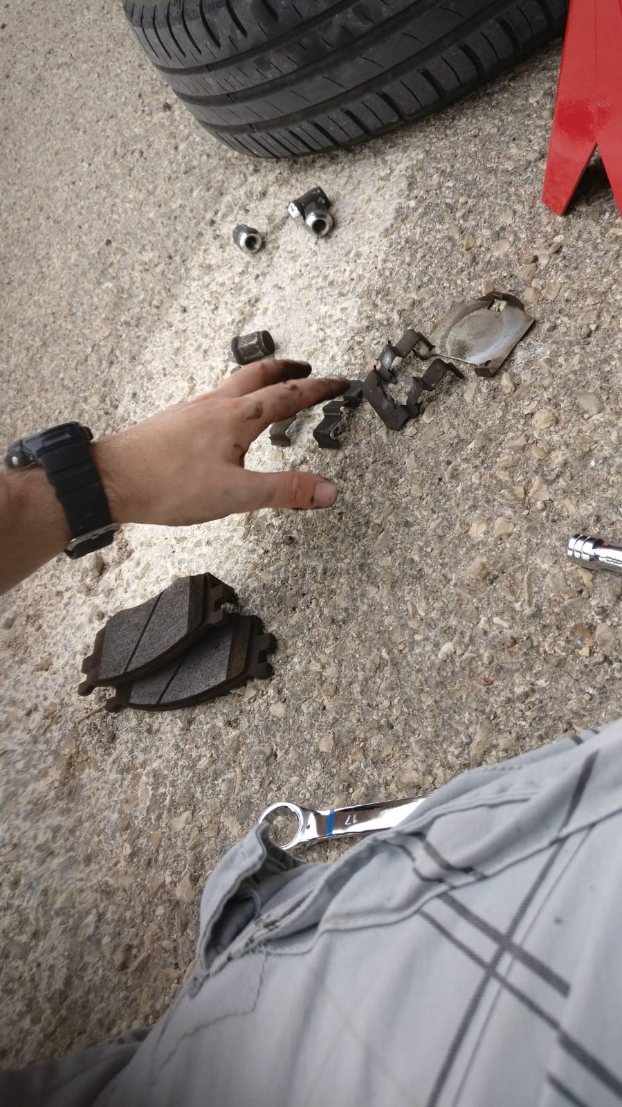 נפרק את כל הפלאחים ממתכת מתושבת הקליפר ומהרפידות הישנות. מה שהגיע לכם עם הרפידות החדשות ניתן להחליף לחדש (לא תמיד זה מגיע).