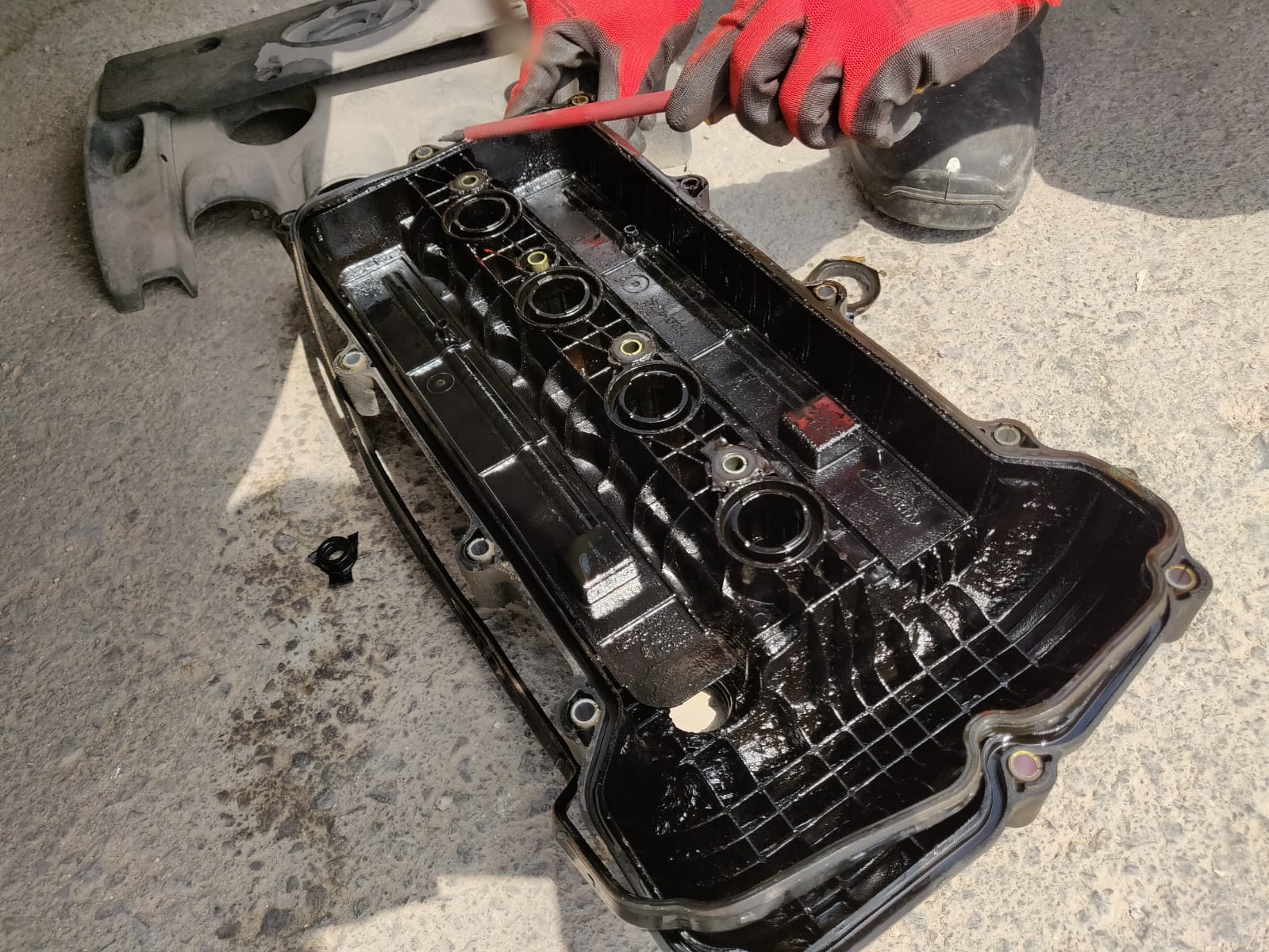 – השלב הבא הוא לעבור על כל השאריות של האטם הישן במכסה ולשלוף אותם או לגרד אותם החוצה