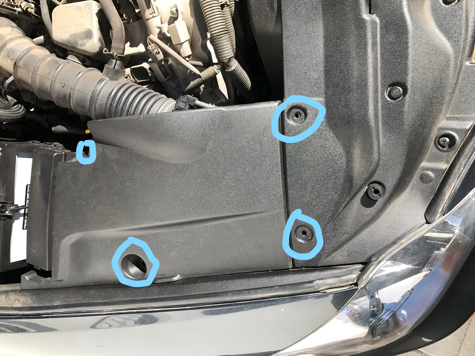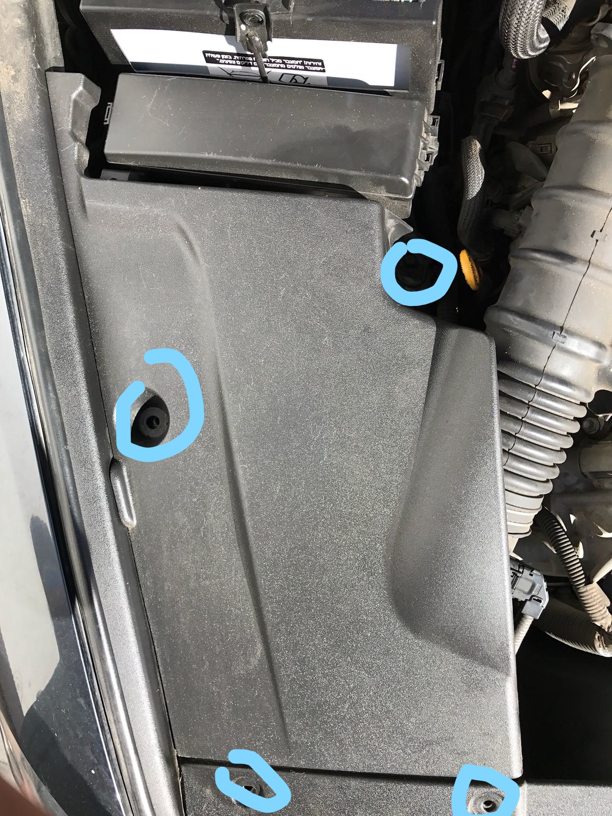 2. שליפת 4 ברגי פלסטיק בכדי להסיר את כיסוי הפלסטיק המכסה את בית פילטר האוויר.