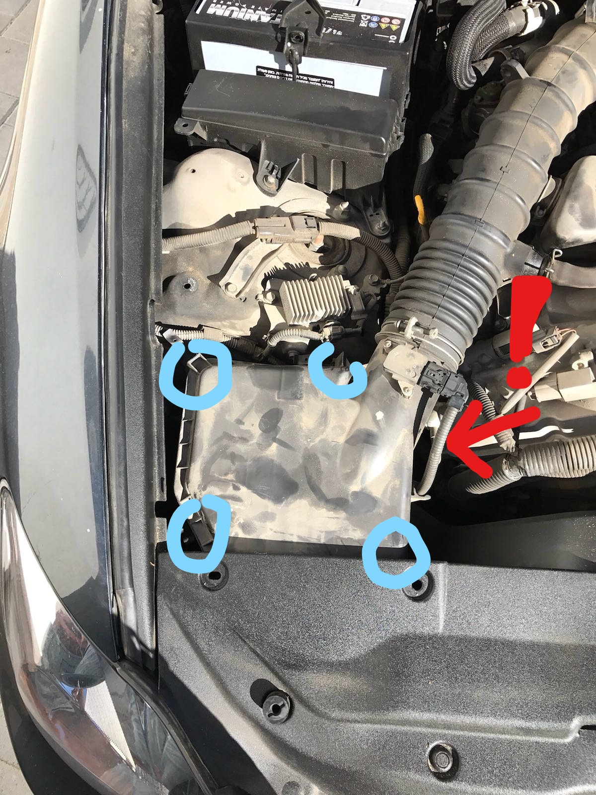 הערה: יש להיזהר לא למתוח את כחוט של חיישן ה-MAF (מסומן באדום)