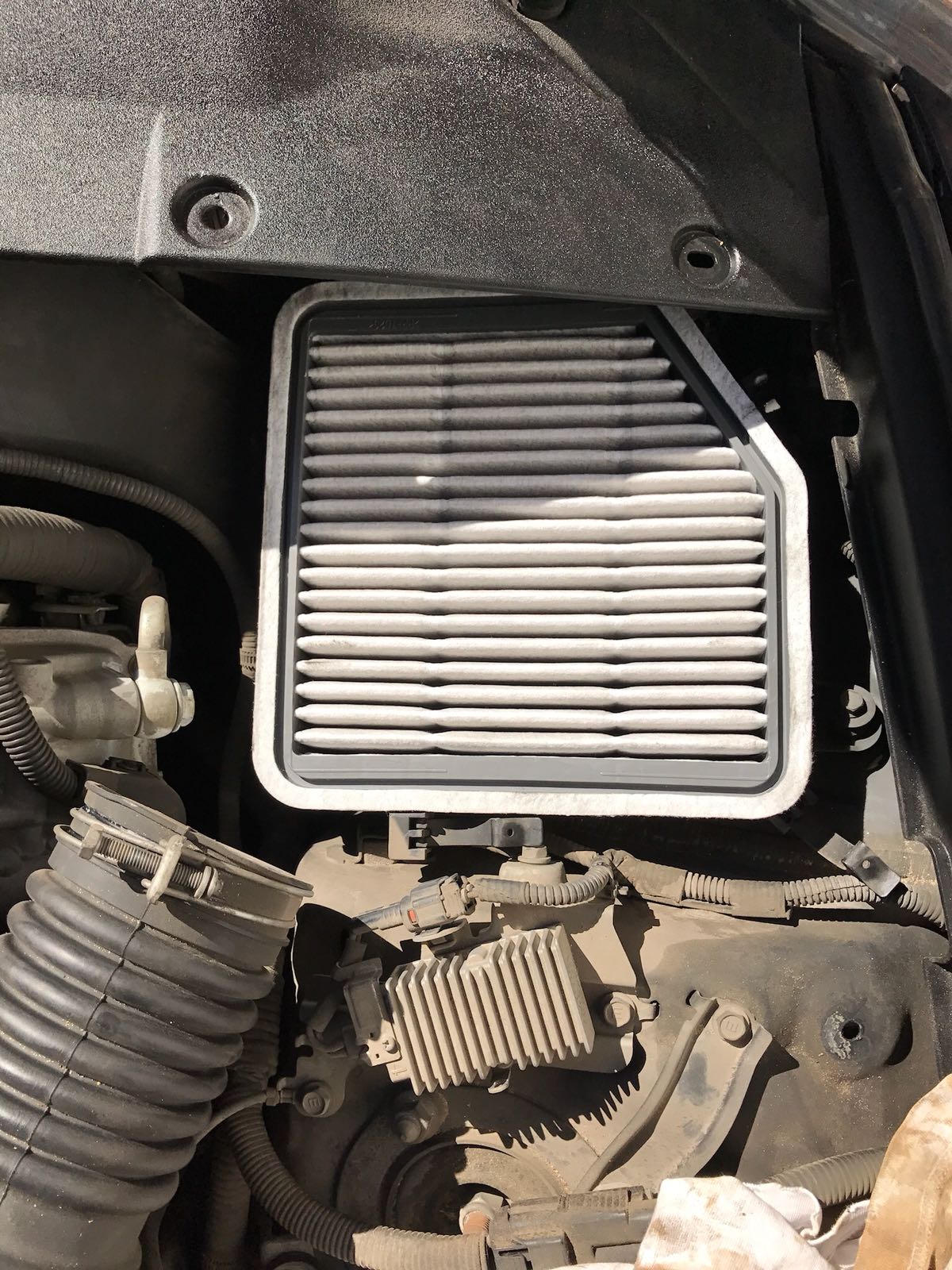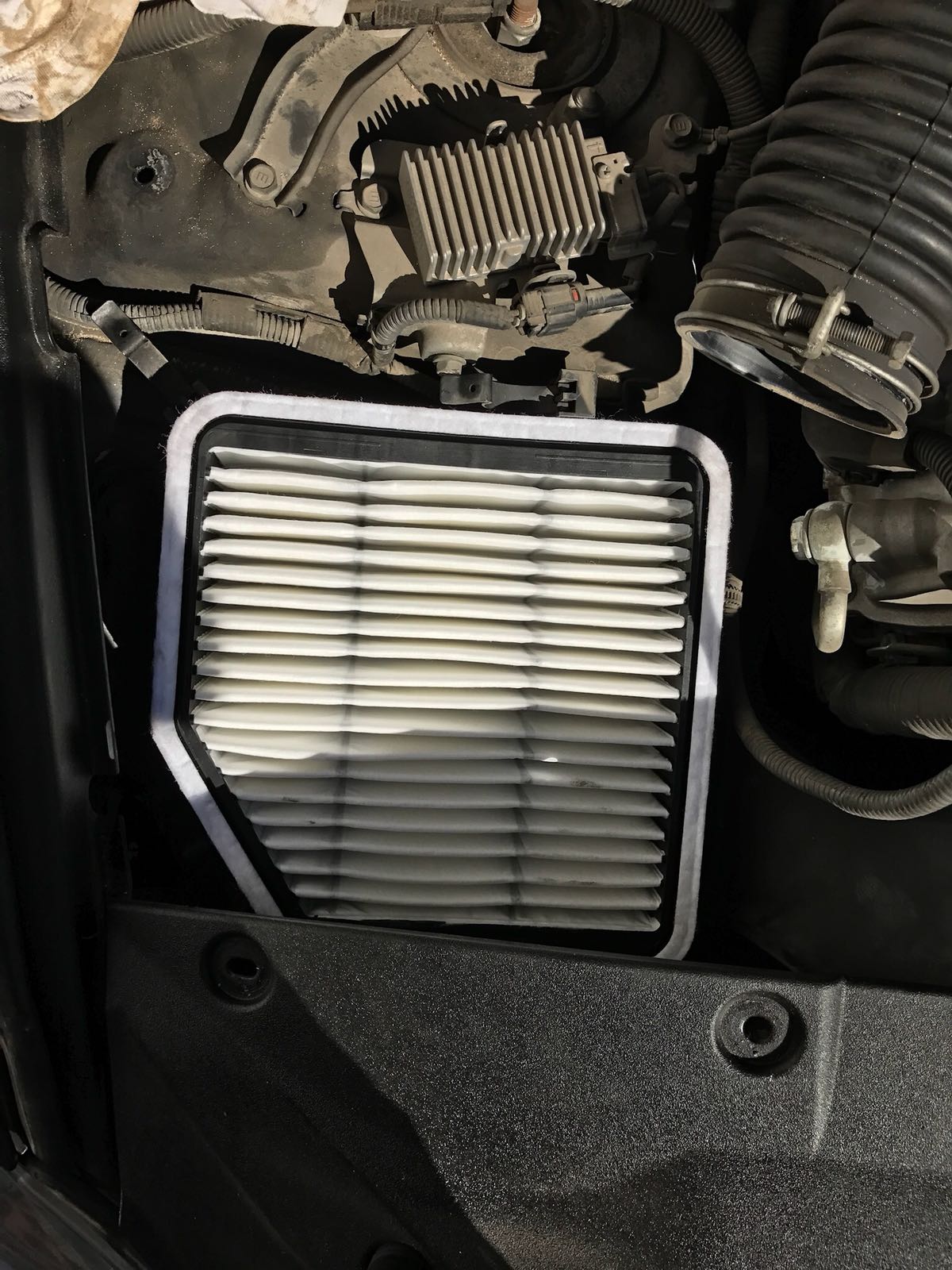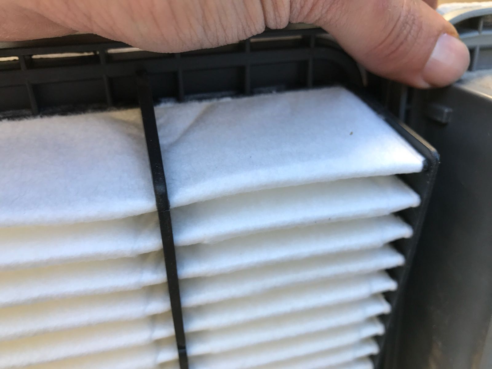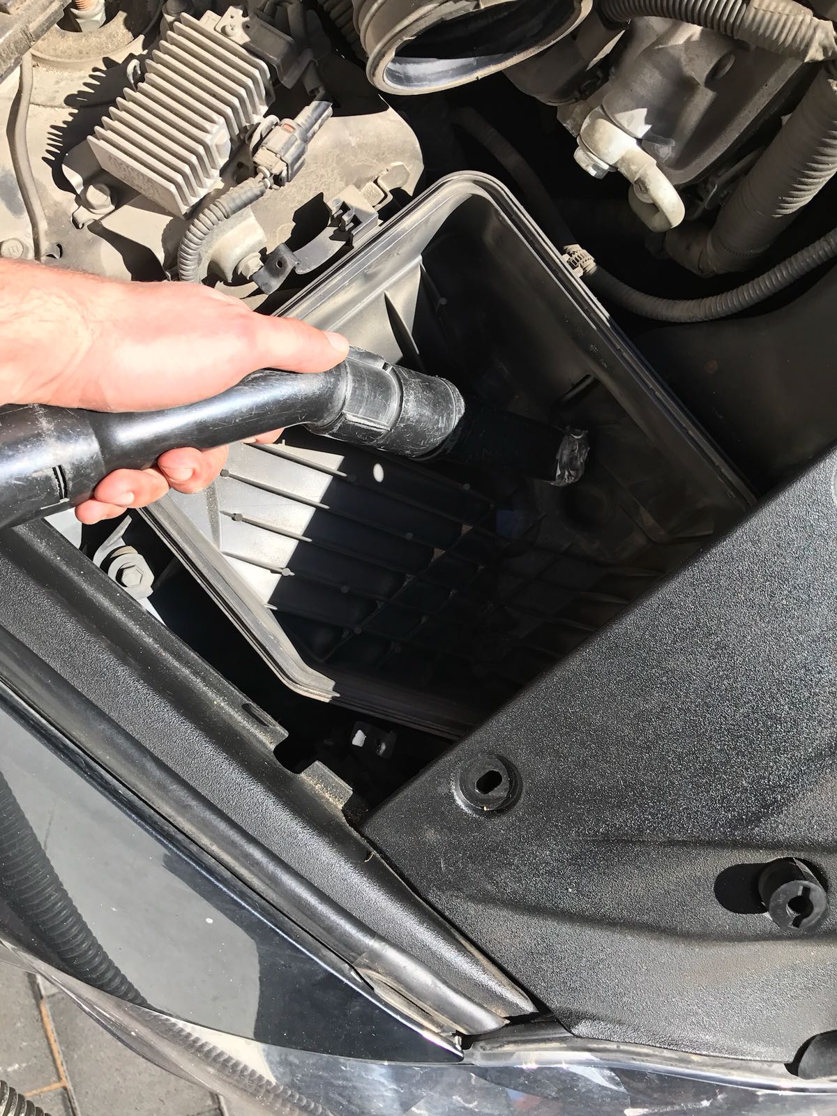 7. ניקוי בית הפילטר עם שואב אבק, הכנסת הפילטר החדש למקומו, סגירת מכסה בית פלטר האוויר, החזרת כיסוי הפלסטיק ו-4 ברגי הפלסטיק מסעיף 4.