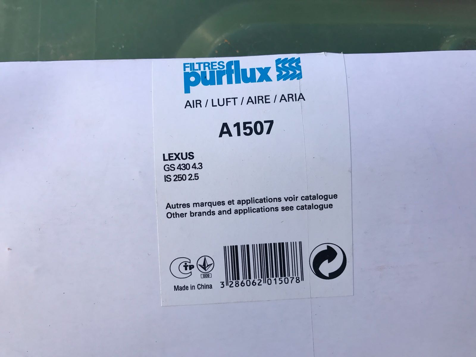 פילטר אוויר מקורי מק״ט 17801-31110 או תחליפי של Purflux A1507