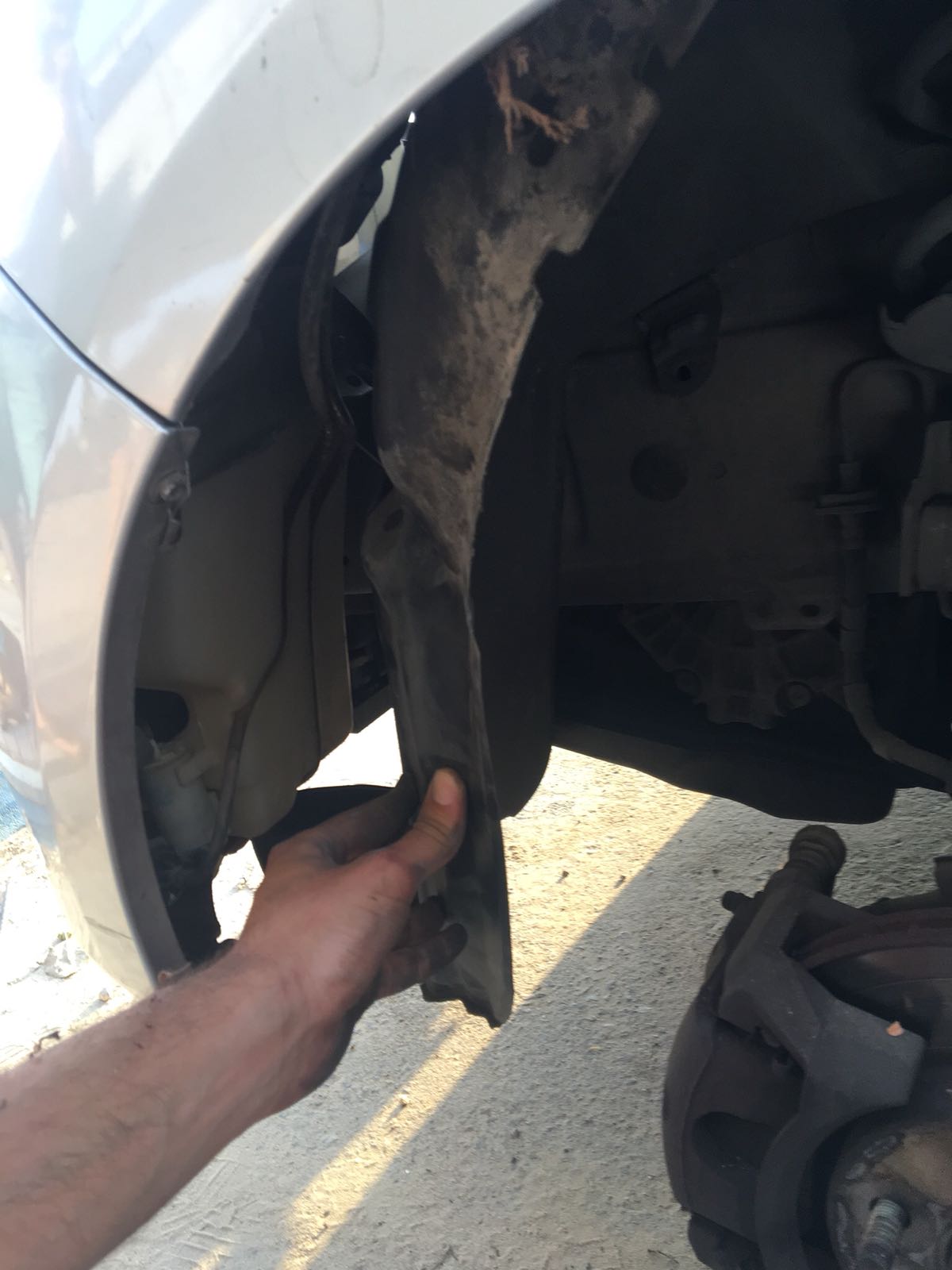 3. כעת יש לפתוח את הבטנה בתא הגלגל הקדמי-שמאלי, בחלק הקרוב לפגוש.