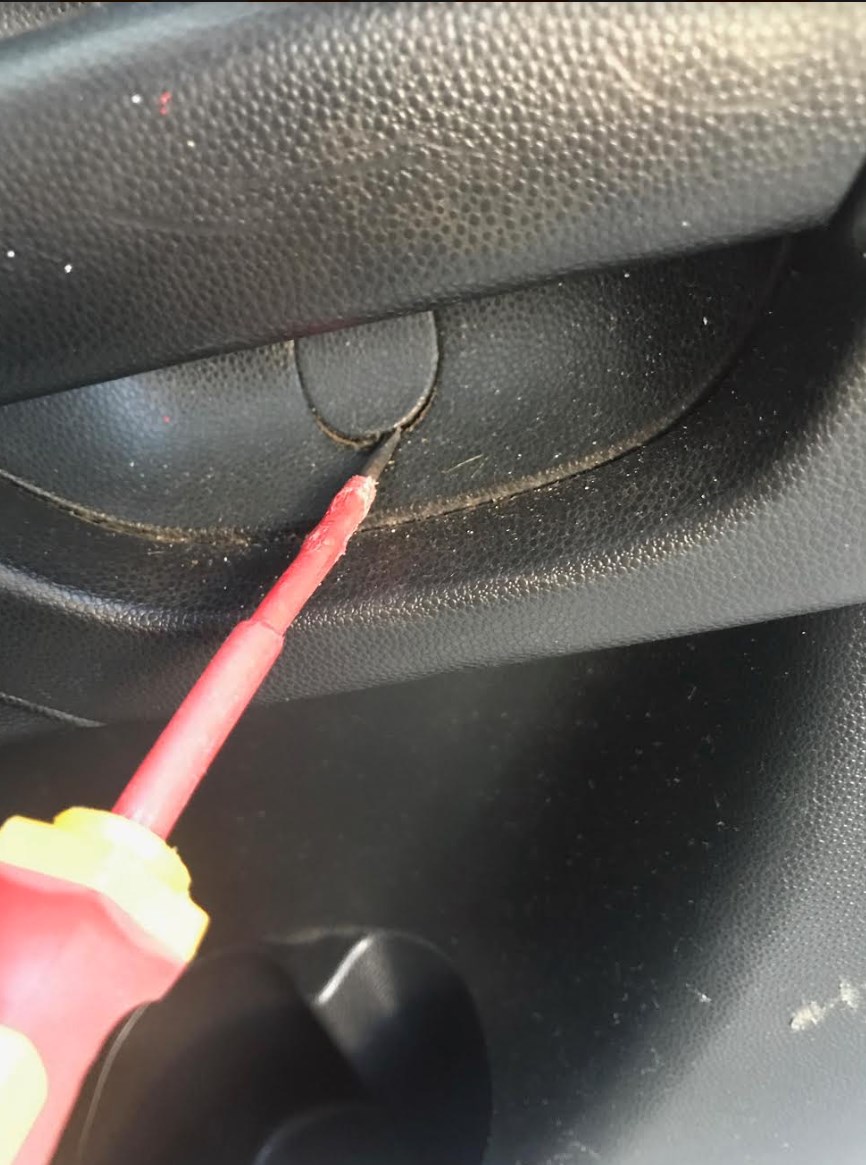 נפתח את המכסה של הברגים בעזרת מברג שטוח קטן: