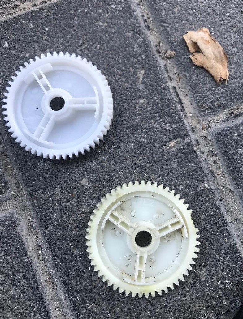 אחרי שהפרדתם את הפלסטיק אתם תראו את הגלגל שיניים עם השיניים החסרות שנשברו: