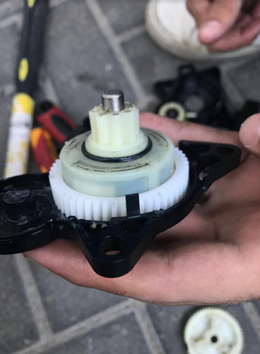 2. לאחר שסיימנו את ההחלפה של גלגל השיניים של המנוע, להחזיר בעדינות ולהשתדל שלא לסובב אותו יותר מידי על מנת שלא לשחרר את הגלגל הפנימי בדלת. (מדבר מתוך ניסיון כואב שנאלצתי להחליף את כל המנגנון בגלל טעות כזו) 🙂