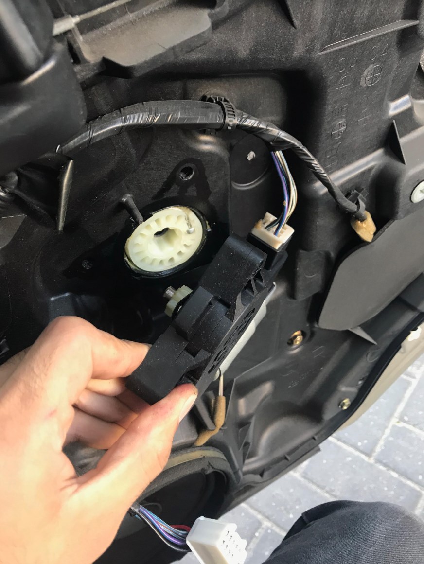 1. הגלגל שמכיל בתוכו את הכבל מתכת שמרים ומוריד את החלון רגיש מאוד לסיבובים. מה שאומר, לאחר שהוצאנו את המנוע מהגלגל הפנימי שבדלת, מומלץ עד חובה לעגן אותו בחזרה עם 3 הברגים שהוצאנו, הדבר ימנע ממנו לברוח כי יש לחץ שמופעל עליו מהכבל מתכת של המנגנון.