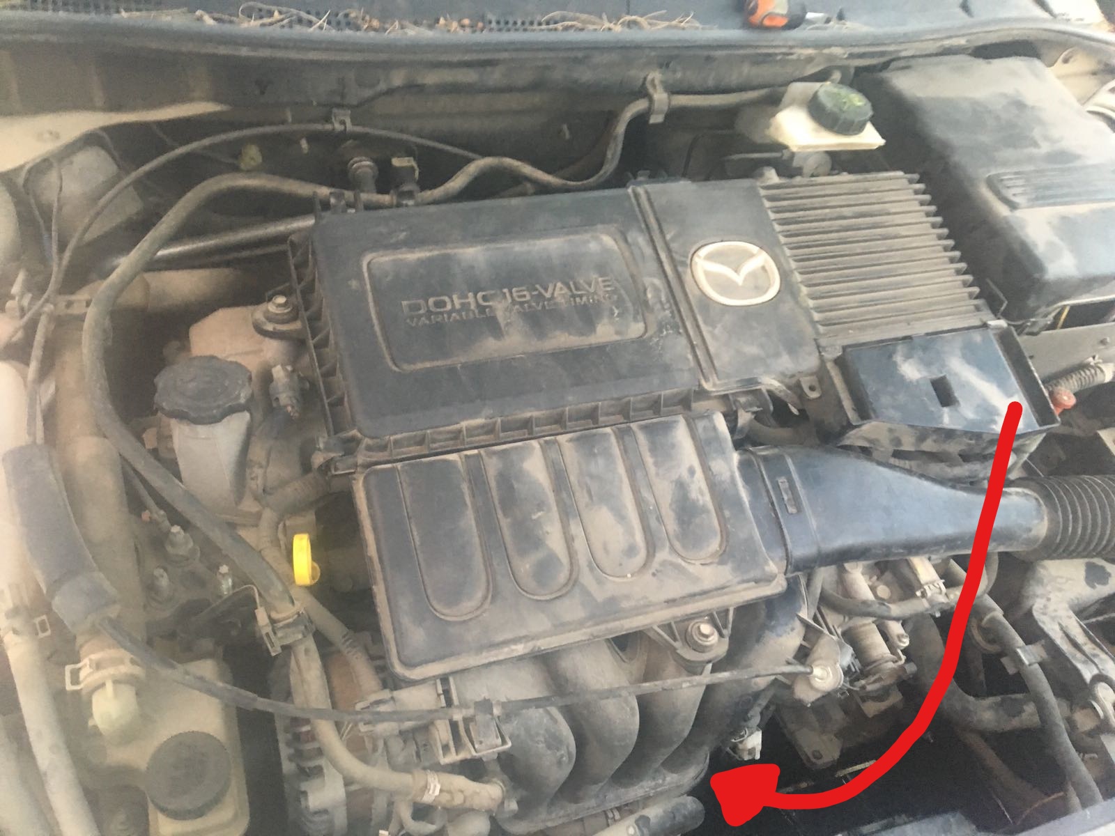 הערה: מומלץ לפתוח את הפתיחה הראשונית של הפילטר באמצעות המפתח פילטר ואת המשך ההברגה החוצה לבצע ידנית (להכניס את היד בין הרדיאטור למנוע ולהוציא את הפילטר – מסומן בחץ אדום).