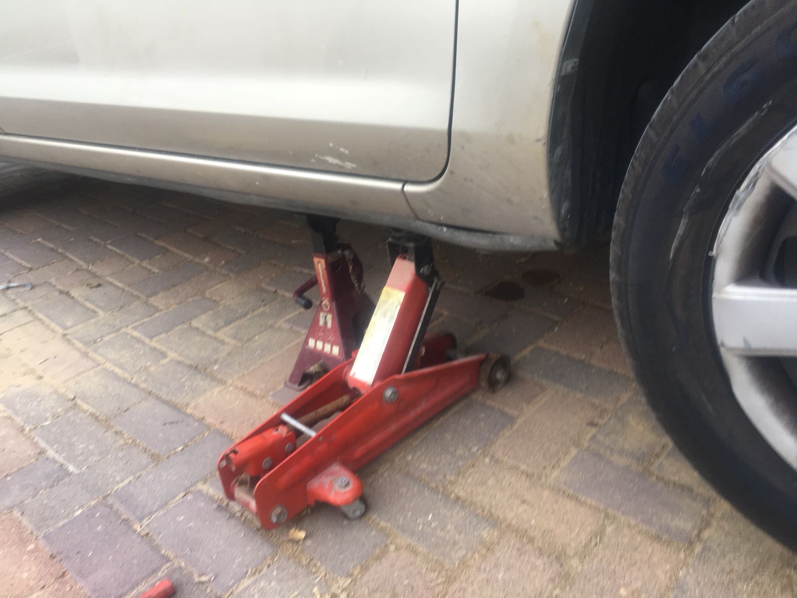 1. הרמת הרכב עם ג׳ק (עדיף מצד ימין של הרכב) ואבטחה עם בוק.