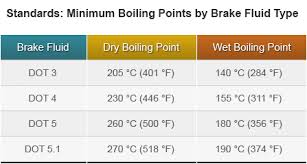 טמפ' מינימלית משתנה בין התקנים, לדוגמא נוזלי בלם סטנדרטיים מתקן DOT4 לרוב טמפ' רתיחה שלהם תיהיה 260 מעלות צלזיוס