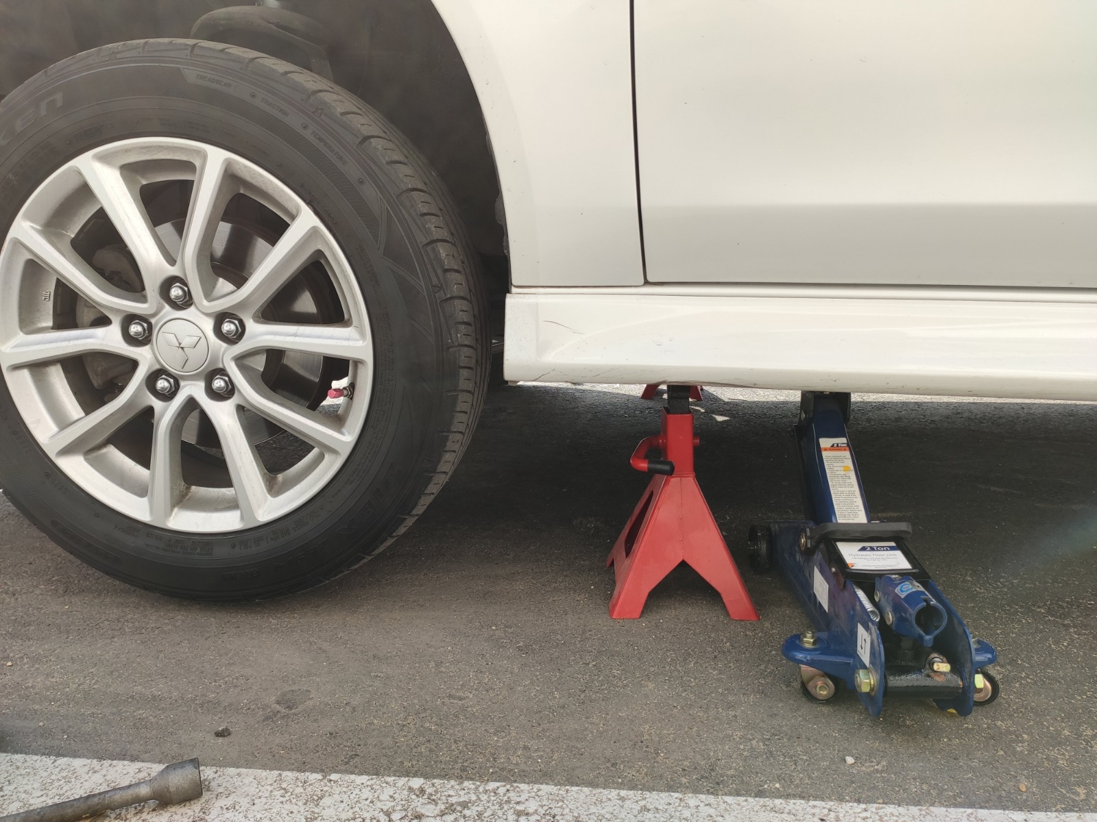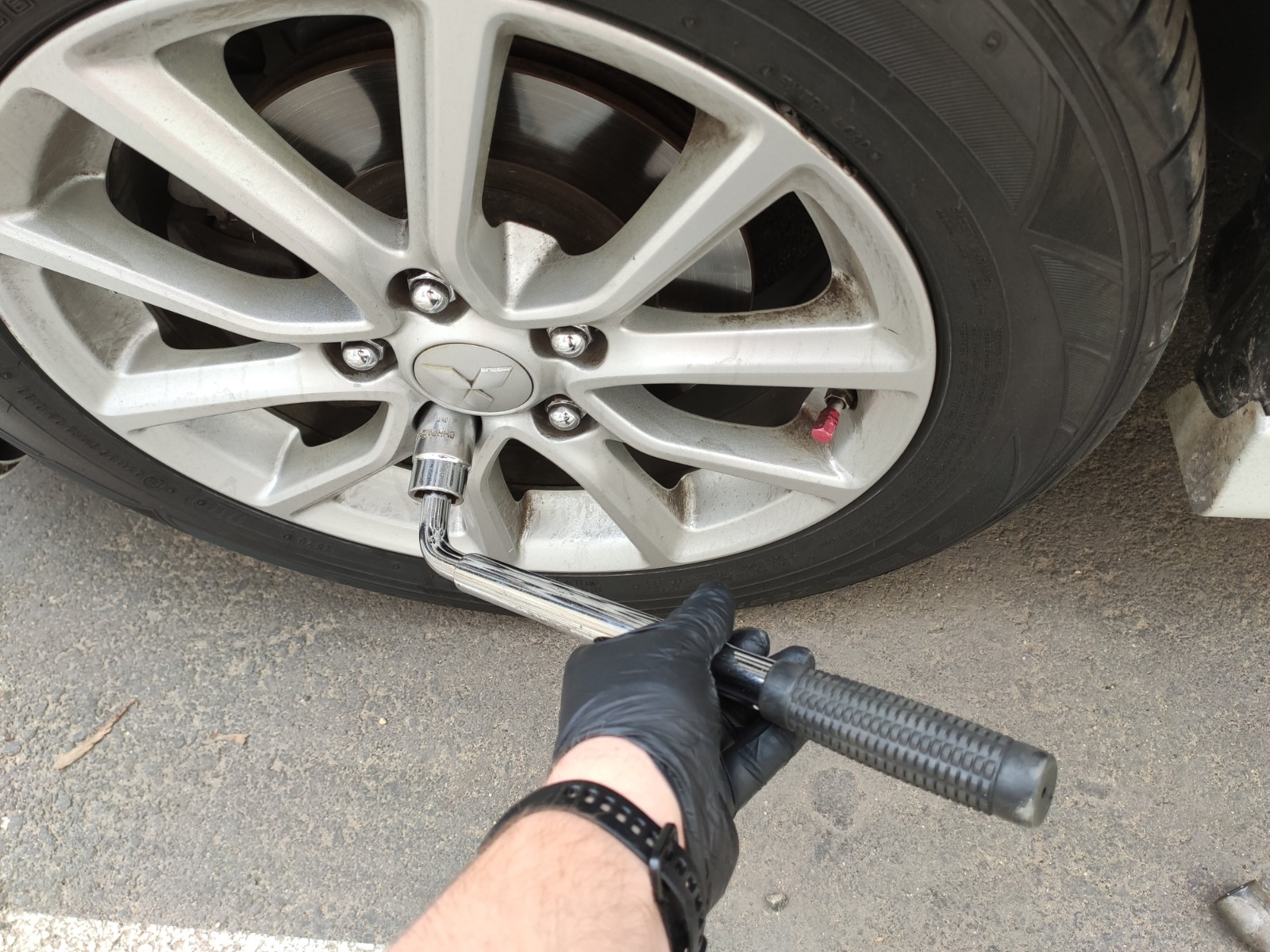 נתחיל בלשחרר את אומי הגלגלים כשהרכב על הקרקע (רק לשחרר את הנעילה, כי כשהרכב יהיה באוויר הגלגל יסתובב ולא נצליח לפתוח)
