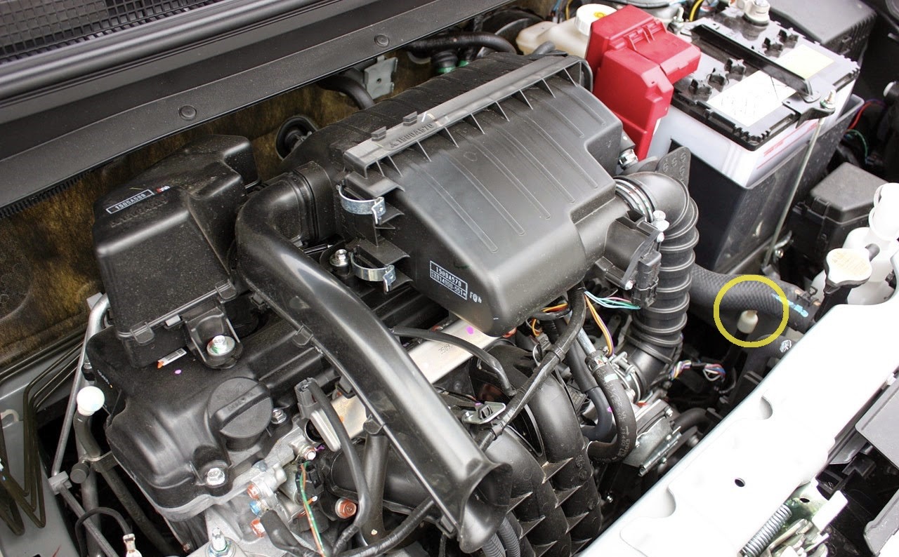 6. נמלא את אותה כמות בנוזל החדש דרך המדיד. המדיד נמצא בצד ימין של תא המנוע, קשה מאוד להתבלבל עם המדיד של הנוזל שנמצא ממש על המנוע בצד שמאל של תא המנוע. בתמונה מסומן בצהוב, מוסתר ע"י צינור המים העליון.
