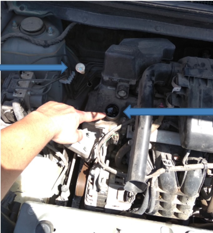 כעת כשהרכב מורם בבטחה נפתח מכסה מנוע, נפתח את פקק מילוי השמן ונמשוך מעט את המדיד.