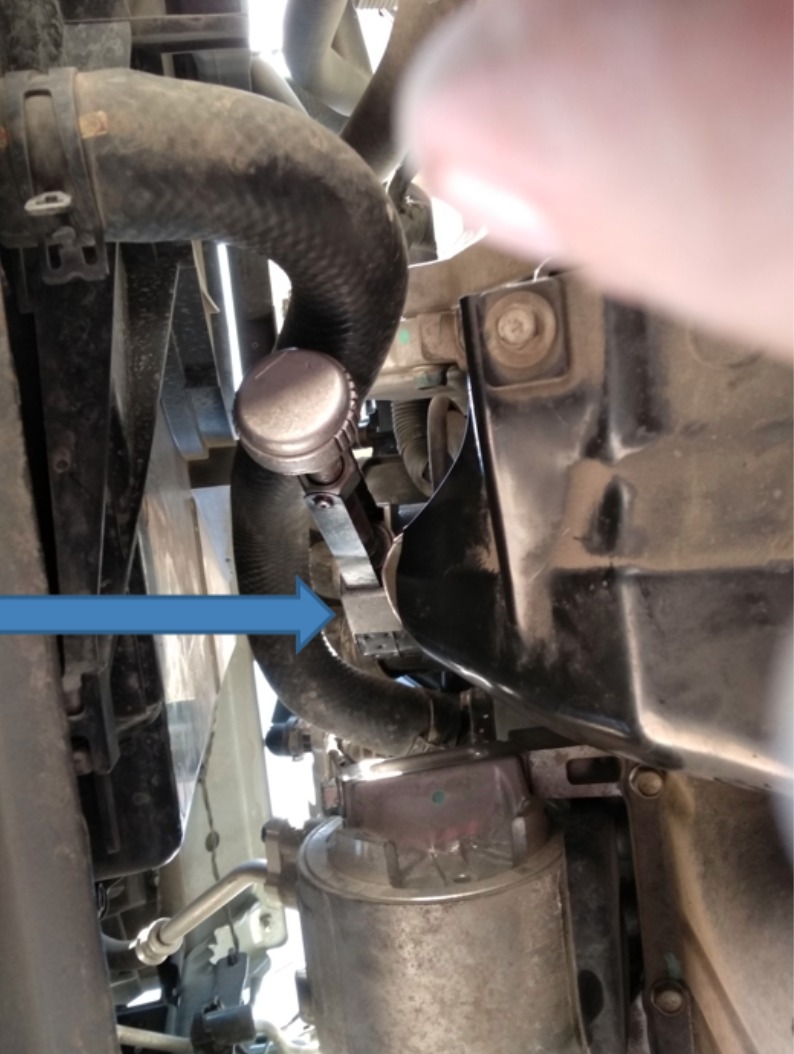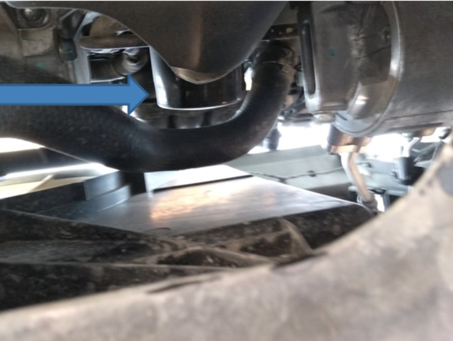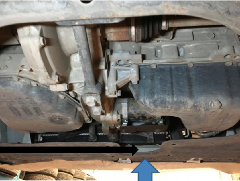 מסנן השמן נמצא איפה שהחץ השחור, אבל בפנים כך שלא רואים אותו בתמונה. אם נתמקם מתחת לאוטו בדיוק איפה שהחץ הסגול ונסתכל למעלה נראה את מסנן השמן.