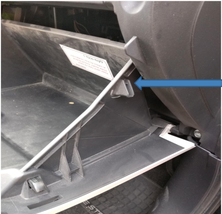 לוחצים בצדדים של תא הכפפות כדי לשחרר אותו שייפתח עד למטה