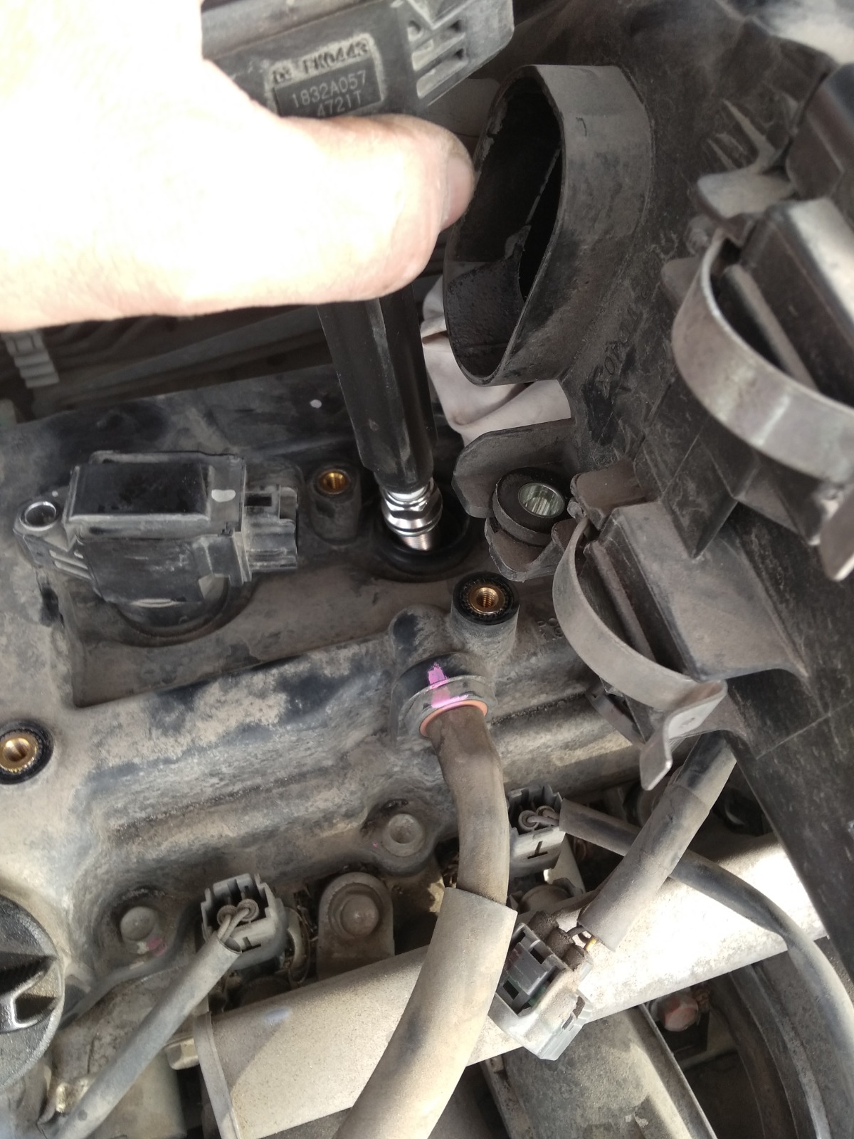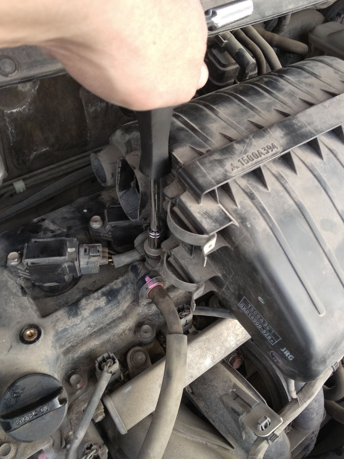 נוציא את הפלאג הישן: את הבוקסה הארוכה 16 מ"מ עם המאריך נכניס לפתח בצילינדר, נלביש על הפלאג, נפתח את ההברגה ונוציא. אם הבוקסה מגנטית אז כשנפתח את הפלאג עד הסוף הפלאג ייצא ביחד עם הבוקסה. אם היא לא מגנטית אז כשנפתח עד הסוף נוציא את הבוקסה, נלביש את הגומי של הכויל על הפלאג וכך נוציא אותו.