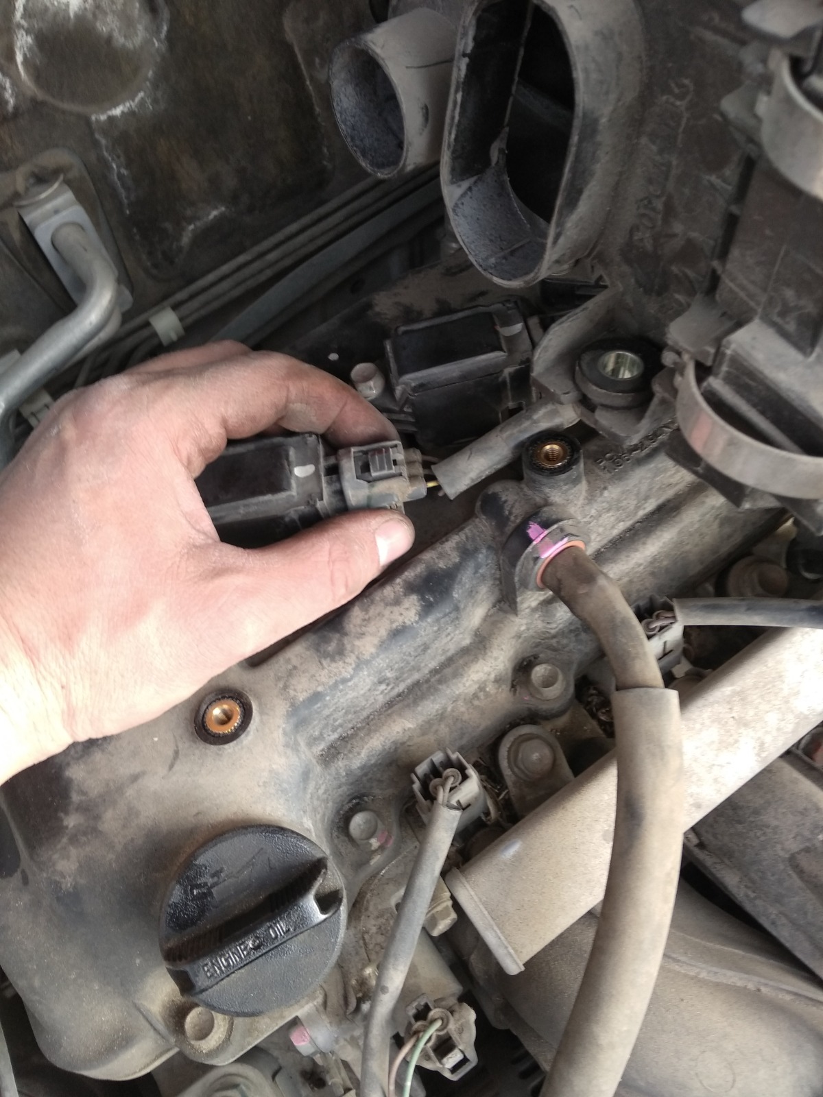 נוציא את צמות החוטים מכל אחד משלושת הכוילים (סלילי ההצתה): נלחץ על חלק הפלסטיק העליון ונמשוך החוצה. כל אחת מהצמות באורך המתאים לכויל אליו היא מחוברת לכן אי אפשר להתבלבל כשנחבר חזרה.