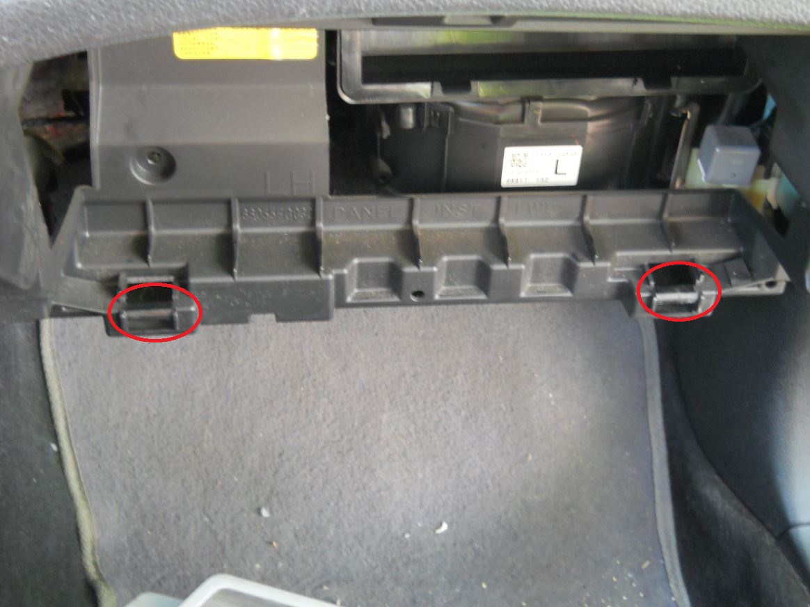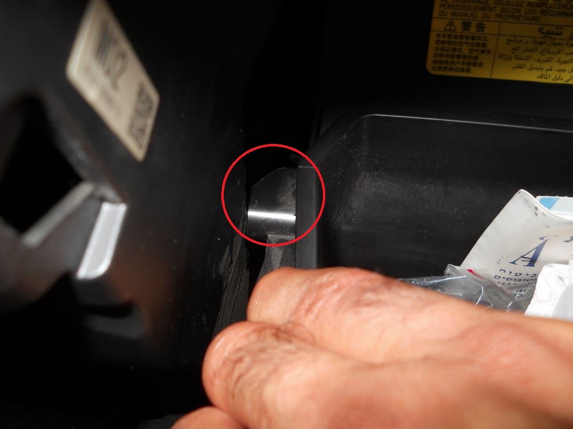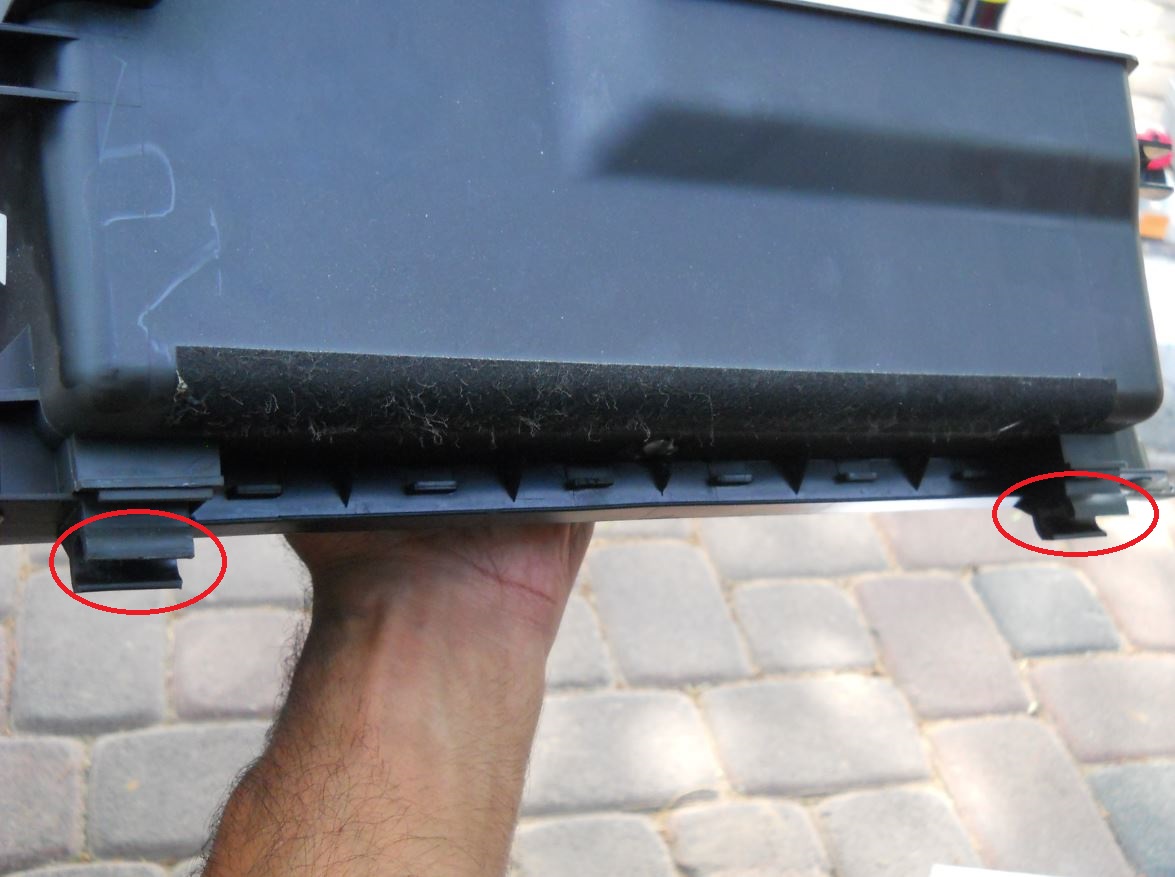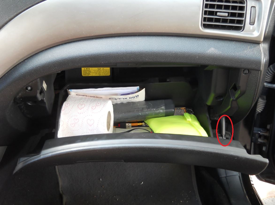 פותחים את תא הכפפות ומחפשים בצד ימין את התופסן שמונע מהתא להיפתח בטריקה, ומשחררים אותו ע"י שליפתו מבורג הפלסטיק שסביבו הוא כרוך