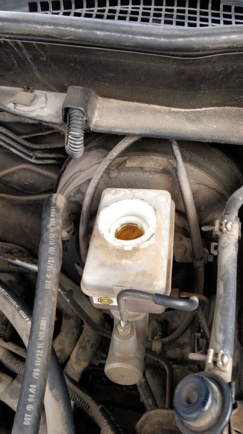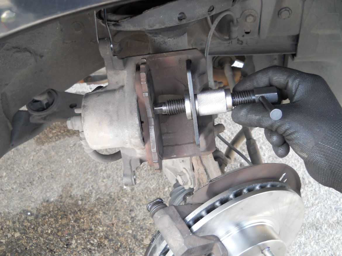 פותחים מיכל נוזל בלמים ומכווצים את הבוכנה תוך כדי השגחה שנוזל לא יישפך מהמיכל. אפשר לשאוב קצת לפני שמתחילים לכווץ, לשמור בצד ובסוף למלא כמה שצריך