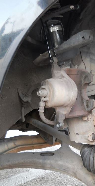 עם בוקסה 14 מוציאים את שני הברגים של מובילי הקליפר, שולפים את הקליפר ובעזרת אזיקון או חוט ברזל תולים את הקליפר על הקפיץ