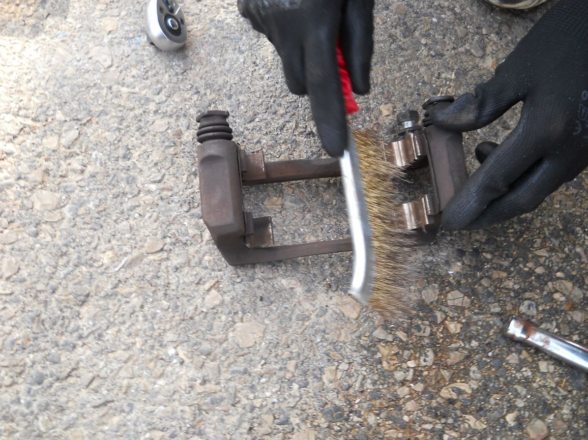 מורידים את החלודה מתושבות הקליפר (בנקודת המגע של הרפידות)
