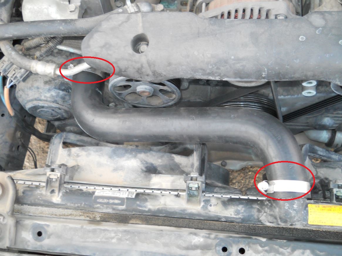 עוברים לניתוק צינור רדיאטור עליון. 2 בנדים תופסים אותו, בעזרת פלייר מרחיקים אותם מנקודת החיבור ומוציאים את הצינור החוצה בעזרת סיבובים ונענועים כי הוא תפוס חזק