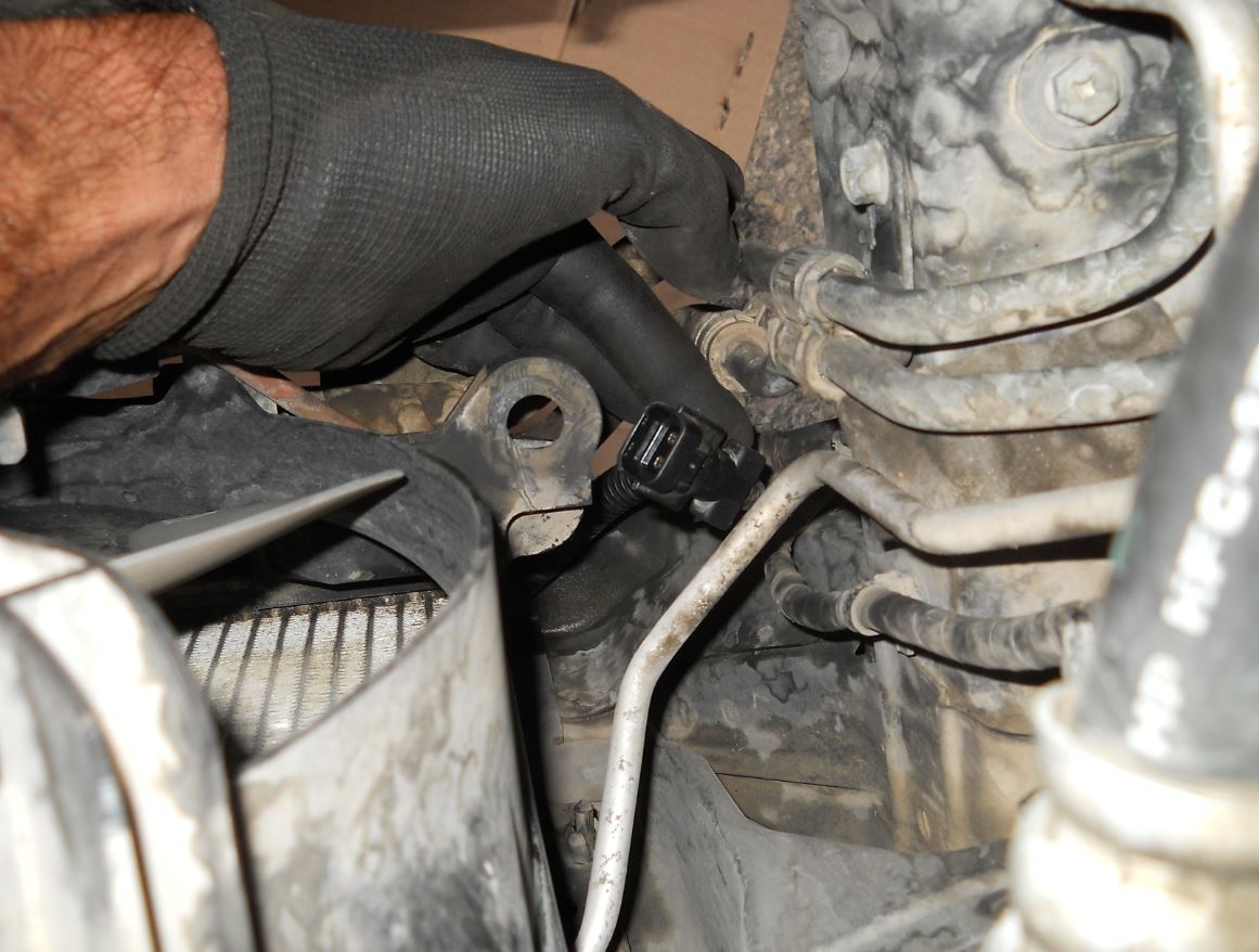 מנתקים את הקונקטור של המאוורר, אותו סיפור כמו עם המאוורר הקודם רק שהפעם הקונקטור הפוך והקליפס כלפי מטה. אפשר לבצע מתחת לרכב למי שיותר נוח, אני הצלחתי מלמעלה
