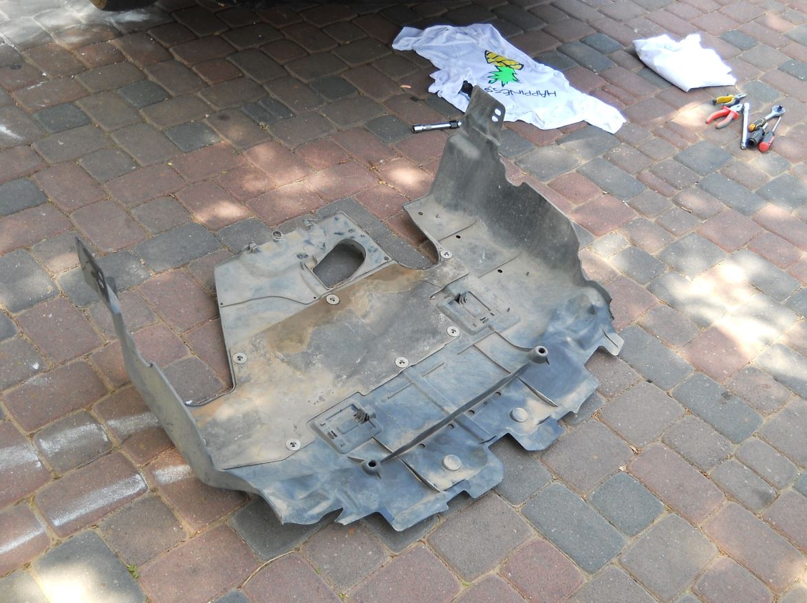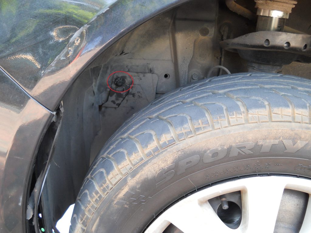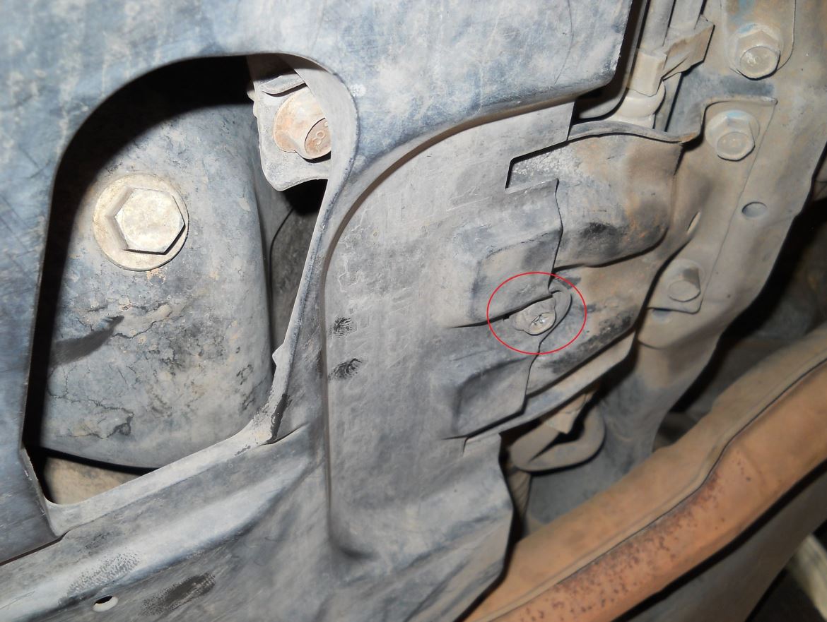 מפרקים מגן תחתון: 3 ברגי 12 מ"מ מחזיקות אותו + 2 תופסני פלסטיק, אחד מעל כל גלגל. משחררים את כולם ומוציאים את המגן