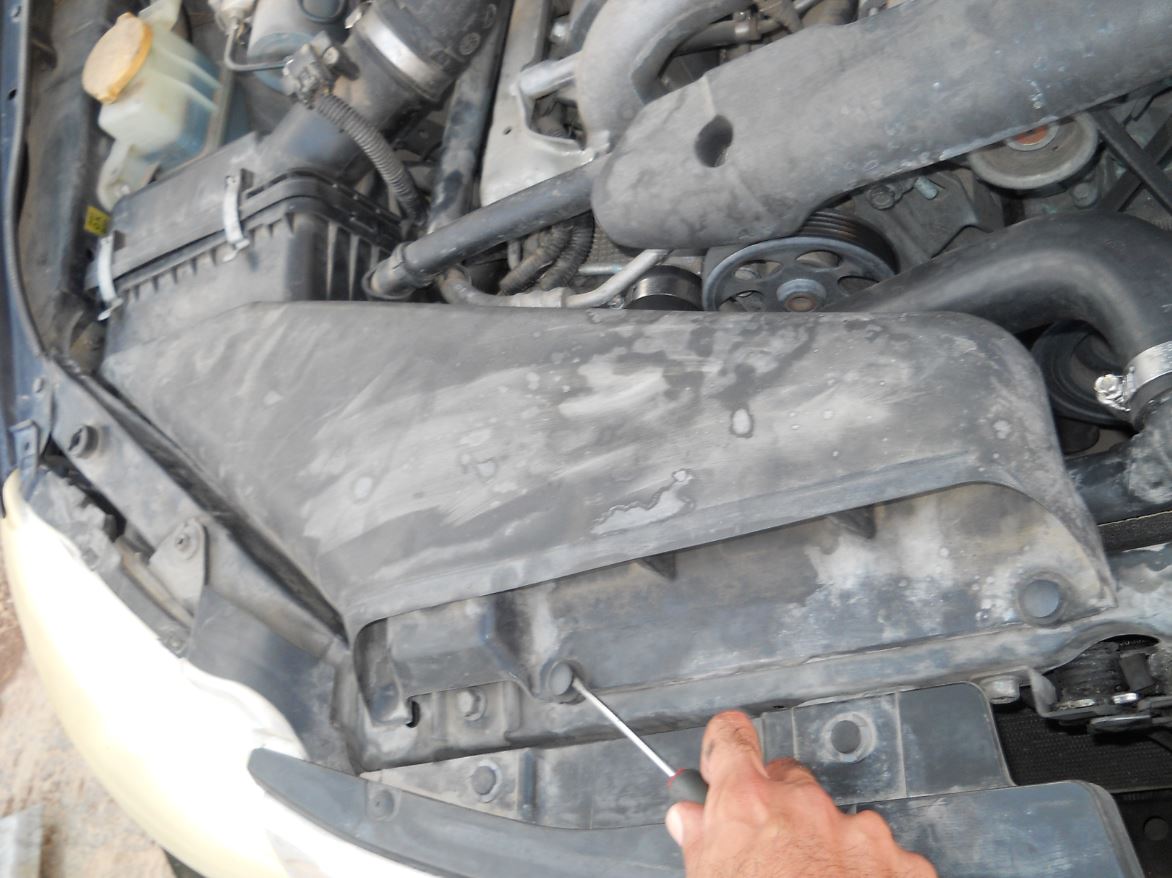 מוציאים את צינור יצירת האוויר מבית פילטר האויר. 2 ברגי פלסטיק מחזיקים אותו, נלחמים איתם במברג שטוח עד שהם יוצאים ומוציאים את הצינור