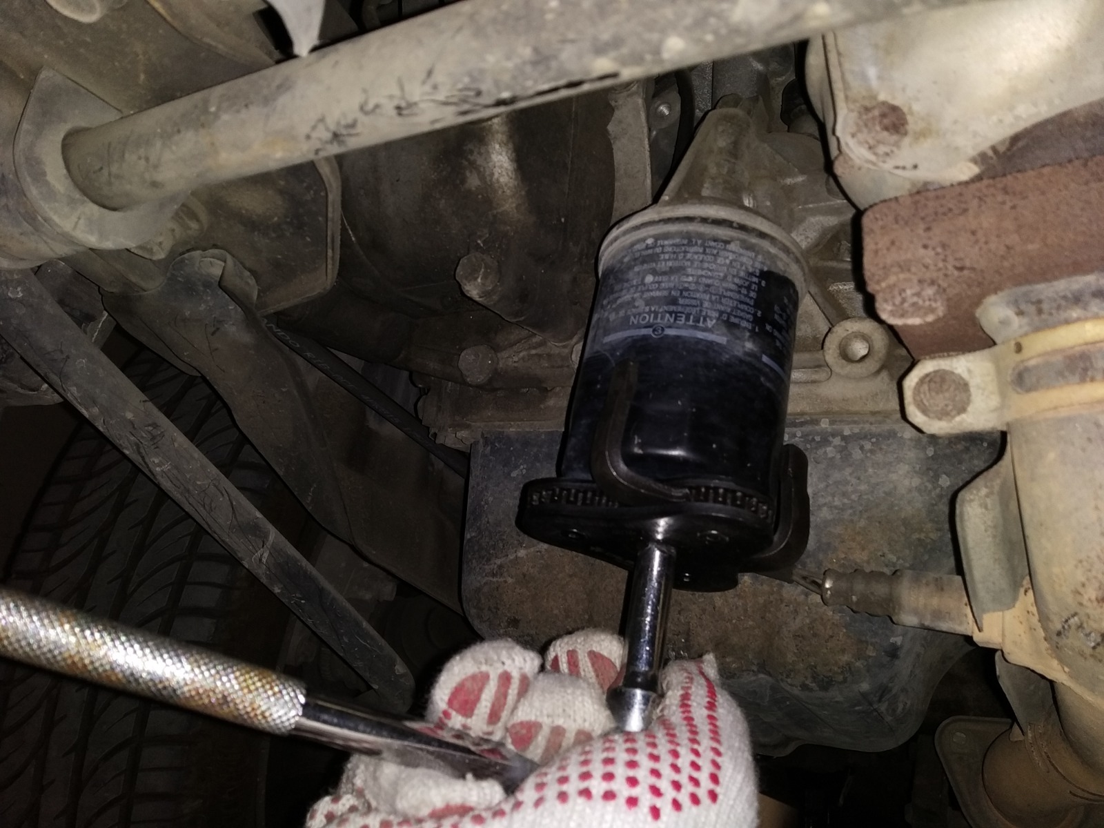 2) .מסובבים קצת את פילטר השמן בלי להוציא אותו (אפשר עם המתאם עכביש ואם פעם שעברה אתם סגרתם אפשר לנסות עם הידיים), כדי לבדוק שלא ניתקע עם פילטר תקוע למקרה שנרוקן את השמן ולא נצליח להחליף פילטר.