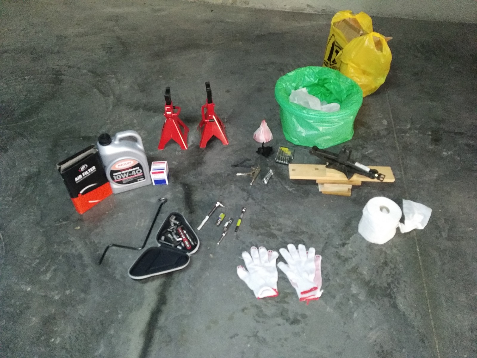 דרושים הכלים הבאים – מפתח פילטר עכביש לפילטר שמן, בוקסה 14מ"מ לבורג ריקון שמן, זוג בוקים לעבודה בטיחותית, משפך לשמן, כלי ריקון לשמן המשומש.
