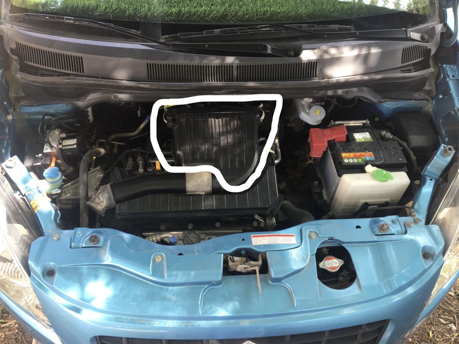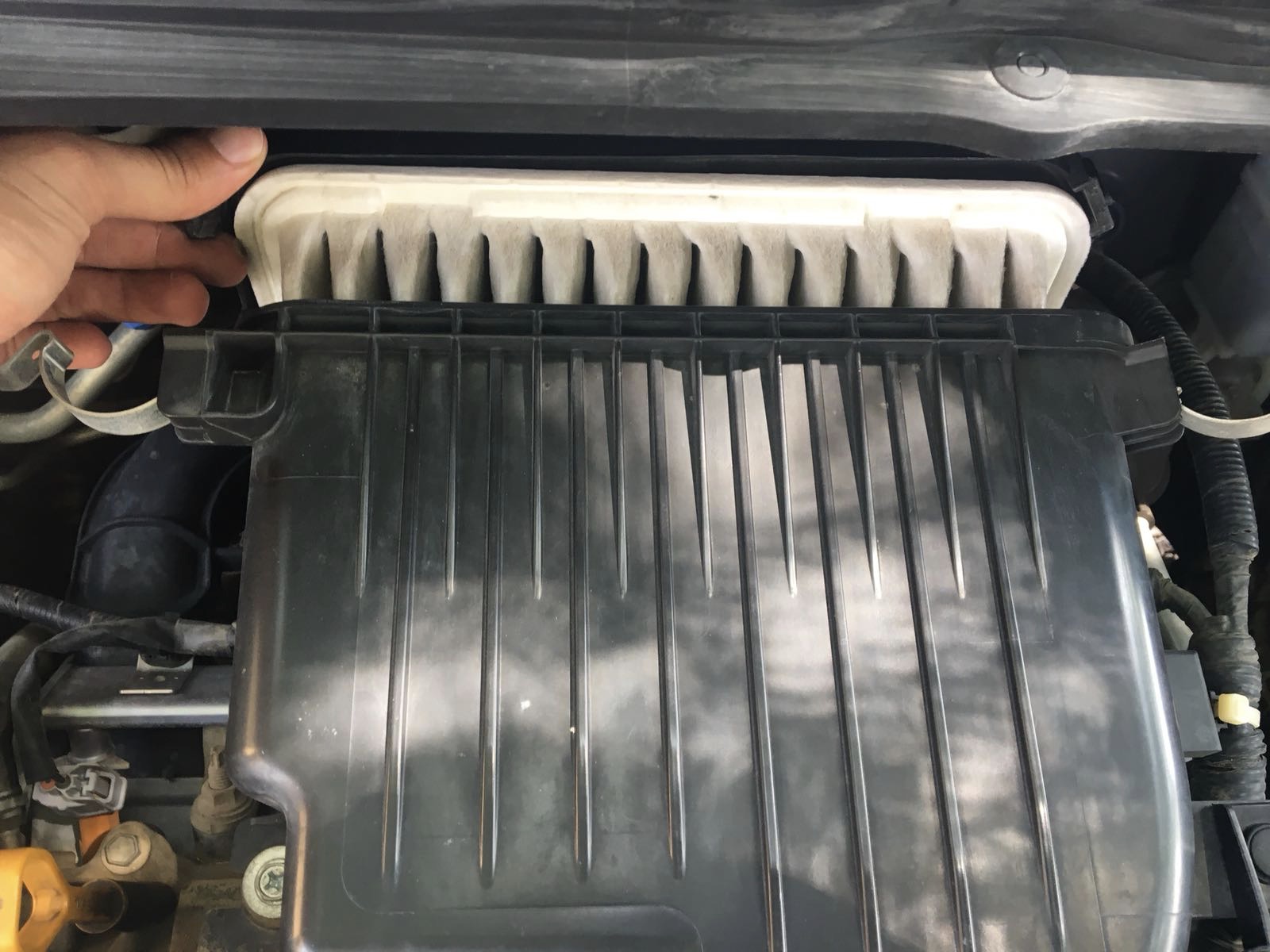 1. פתיחת מכסה מנוע וזיהוי בית פילטר האוויר (מסומן בלבן).