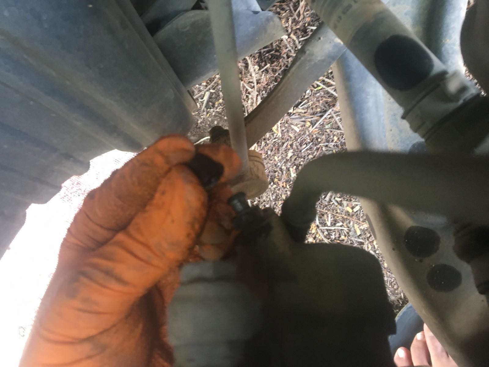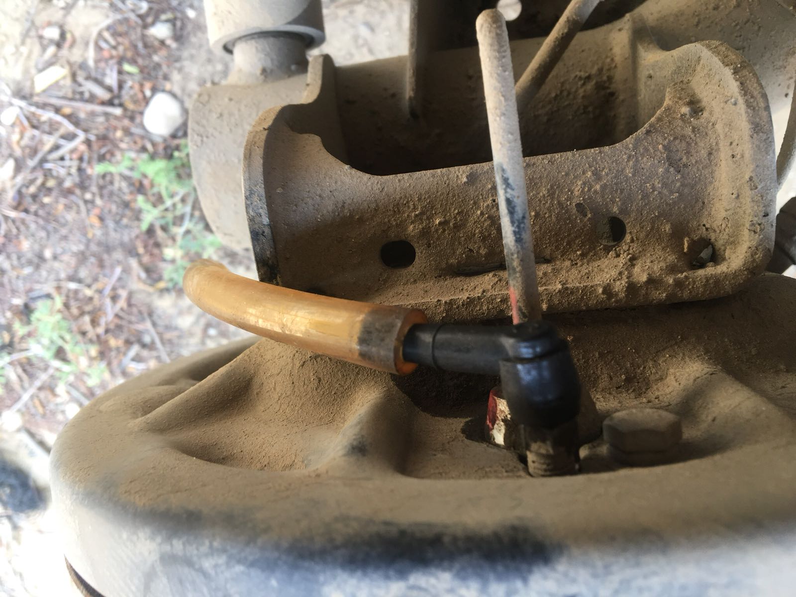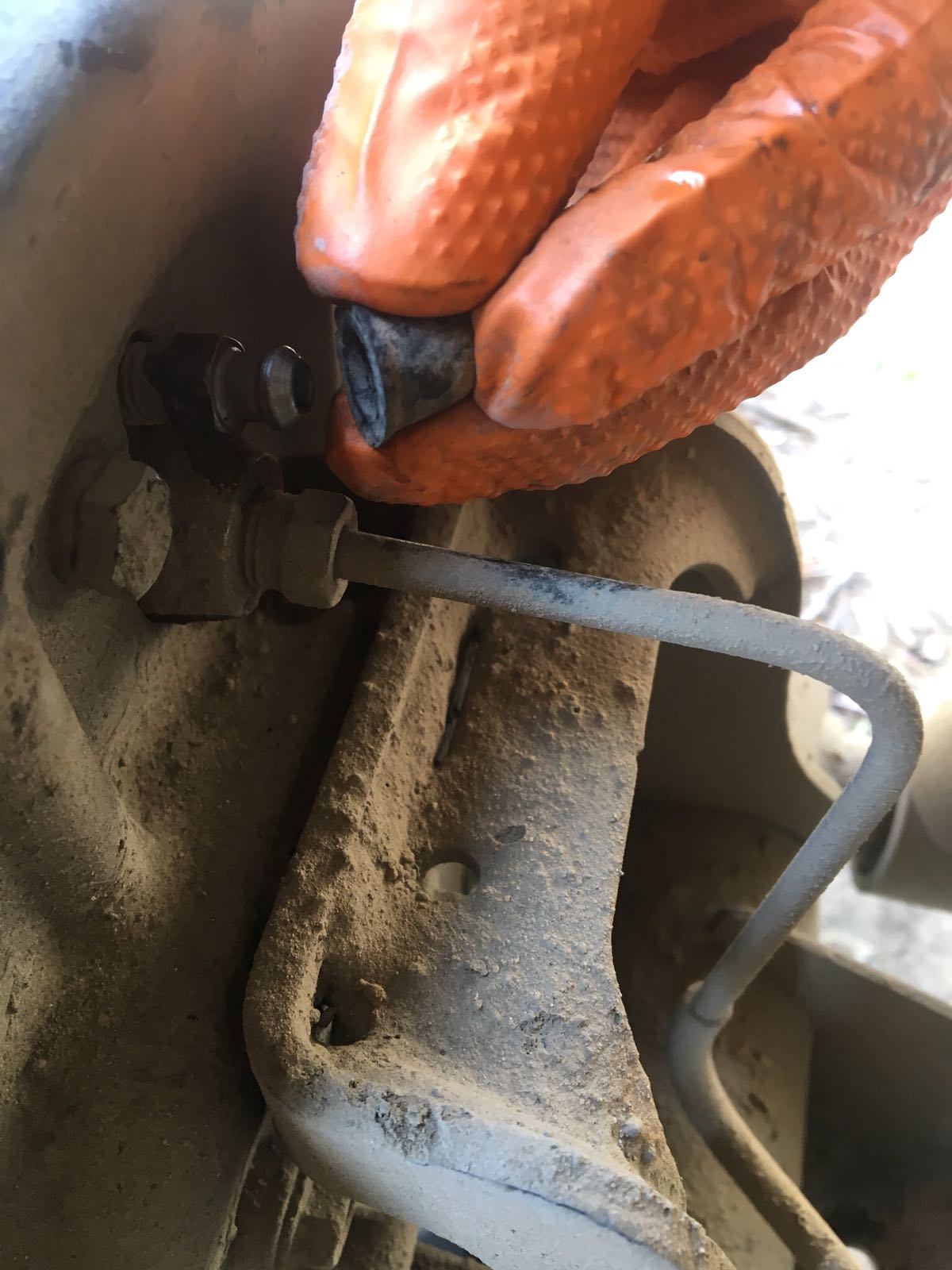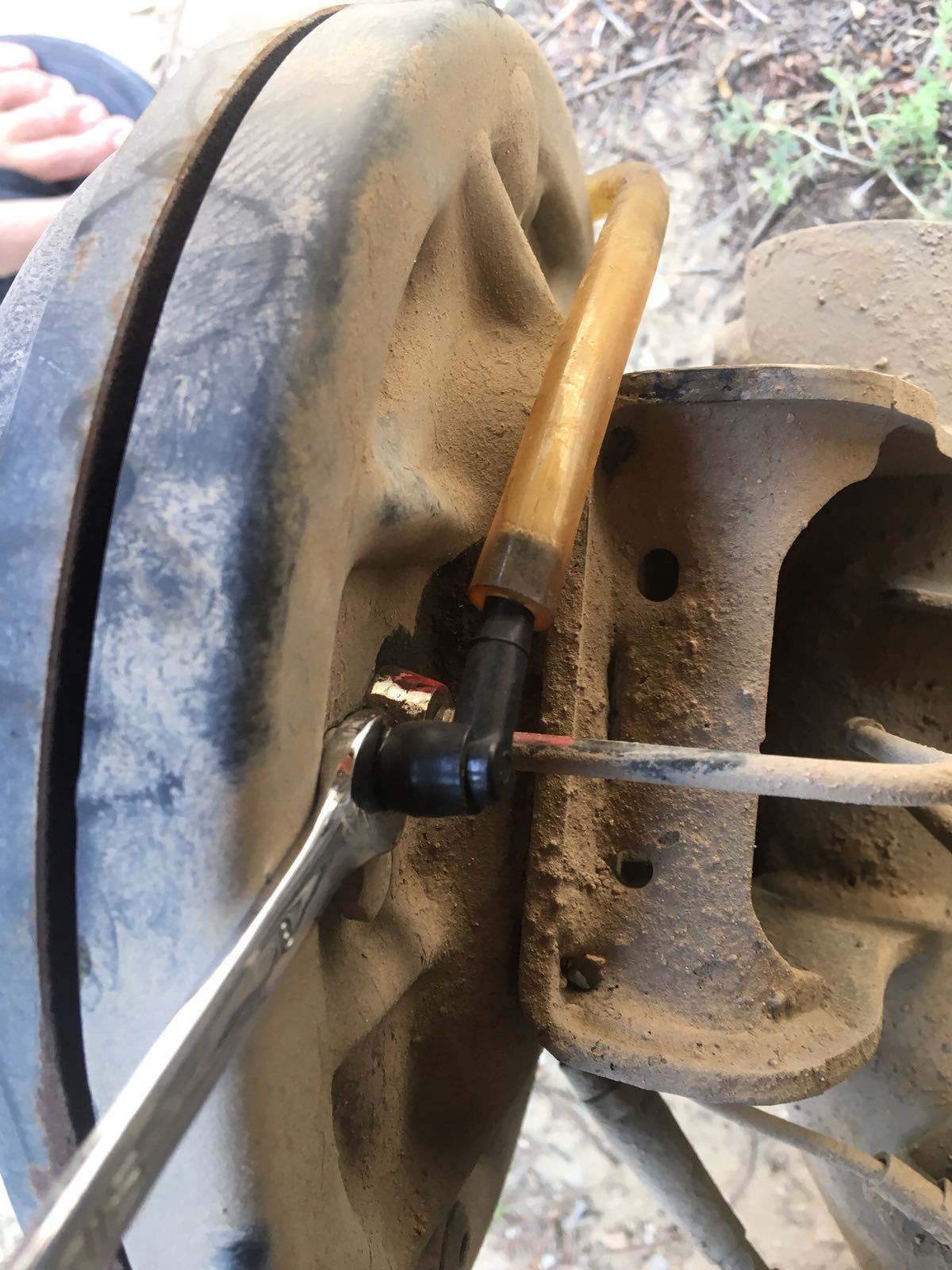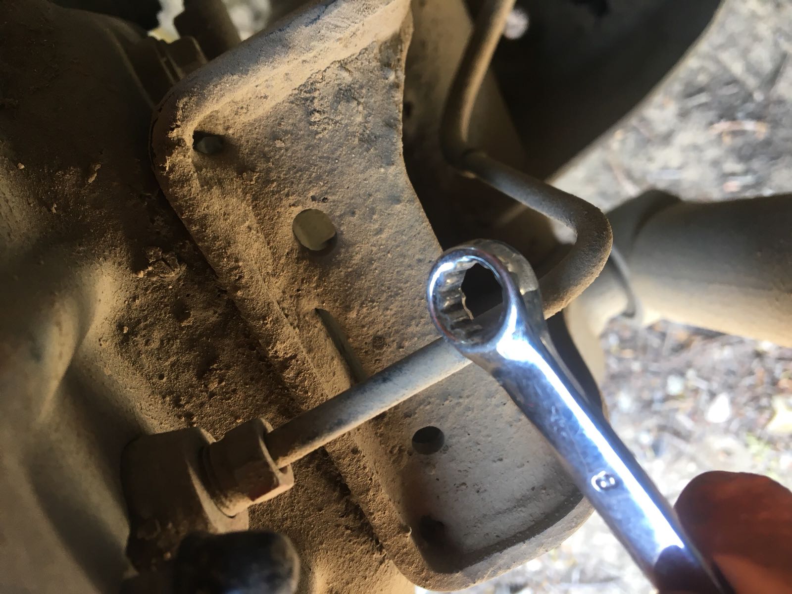5. כעת נפתח את פטמת הניקוז פתיחה ראשונית (כחצי סיבוב) עם מפתח רינג 8 מ"מ (בגלגלים הקדמיים זה 11 מ"מ).