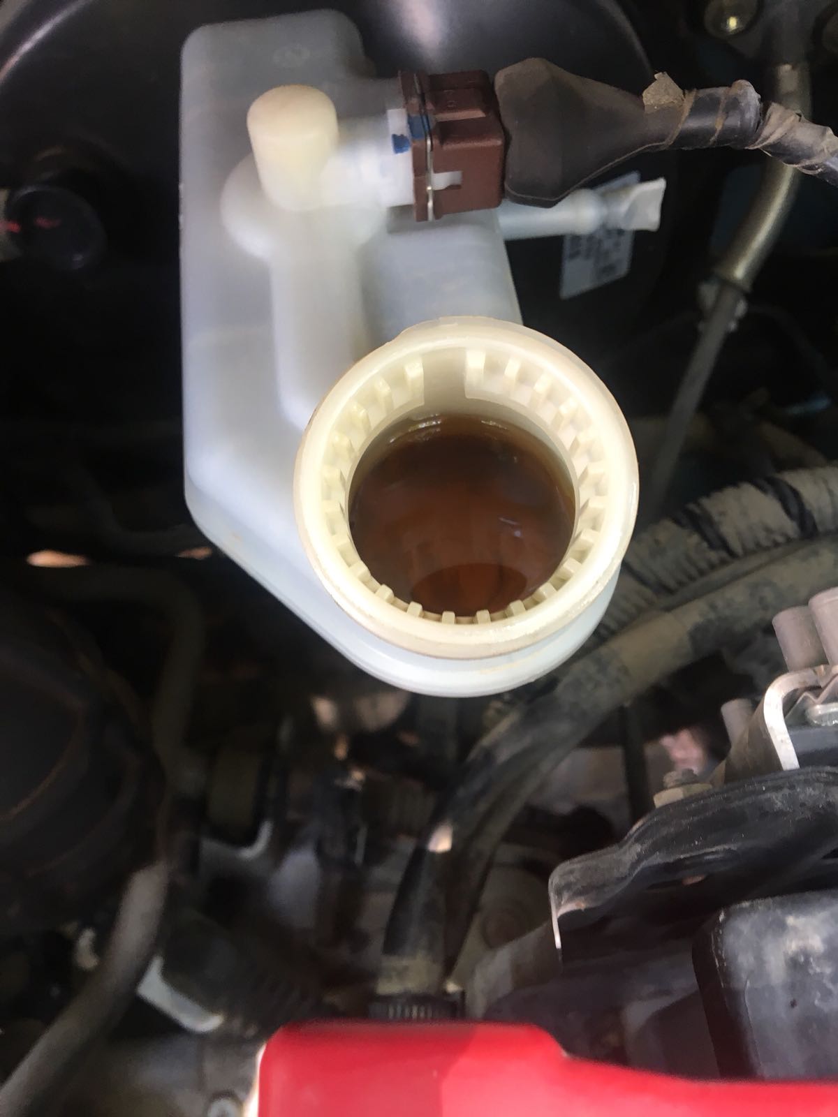 1. פתיחת מכסה מיכל נוזל הבלמים ושאיבת הנוזל שבכוסית (נשאב כמה שניתן, רק חשוב לשים לב לא להגיע ממש למינימום של הכוסית, כלומר לחלק העליון של משאבת הבלם המרכזית).