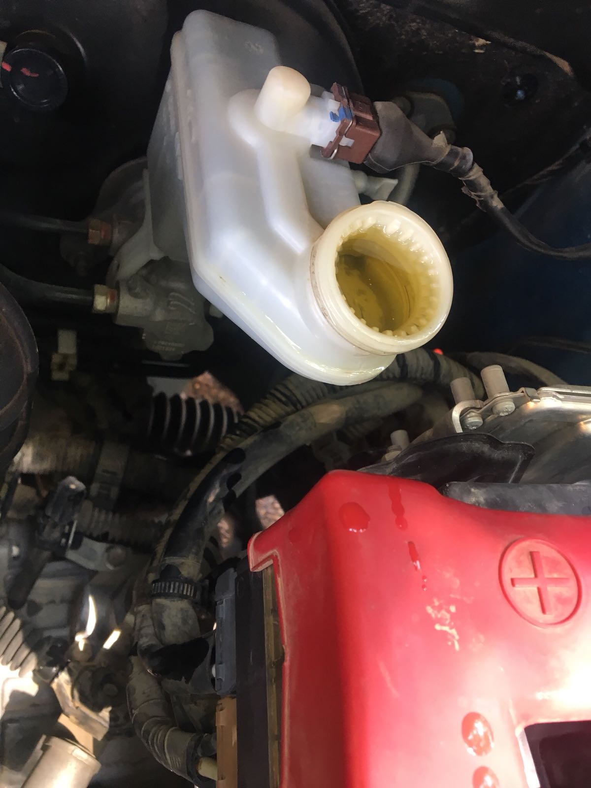 2. מילוי נוזל בלמים DOT4 חדש בכוסית (למלא עד הסוף).