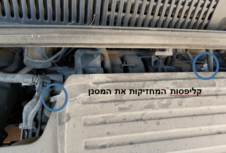 אחרי שמשחררים את הברגים והבנד נדרש לשחרר שתי קליפסות שלוחצות על המסנן ולהרים את המכסה