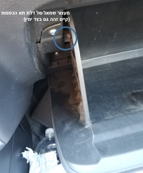 פשוט צריך לפתוח את דלת תא הכפפות (לא לשכוח לרוקן את התא) ואז ללחוץ את הדלת משני הצדדים כדי שתזוז מהמעצור שמחזיק אותה.