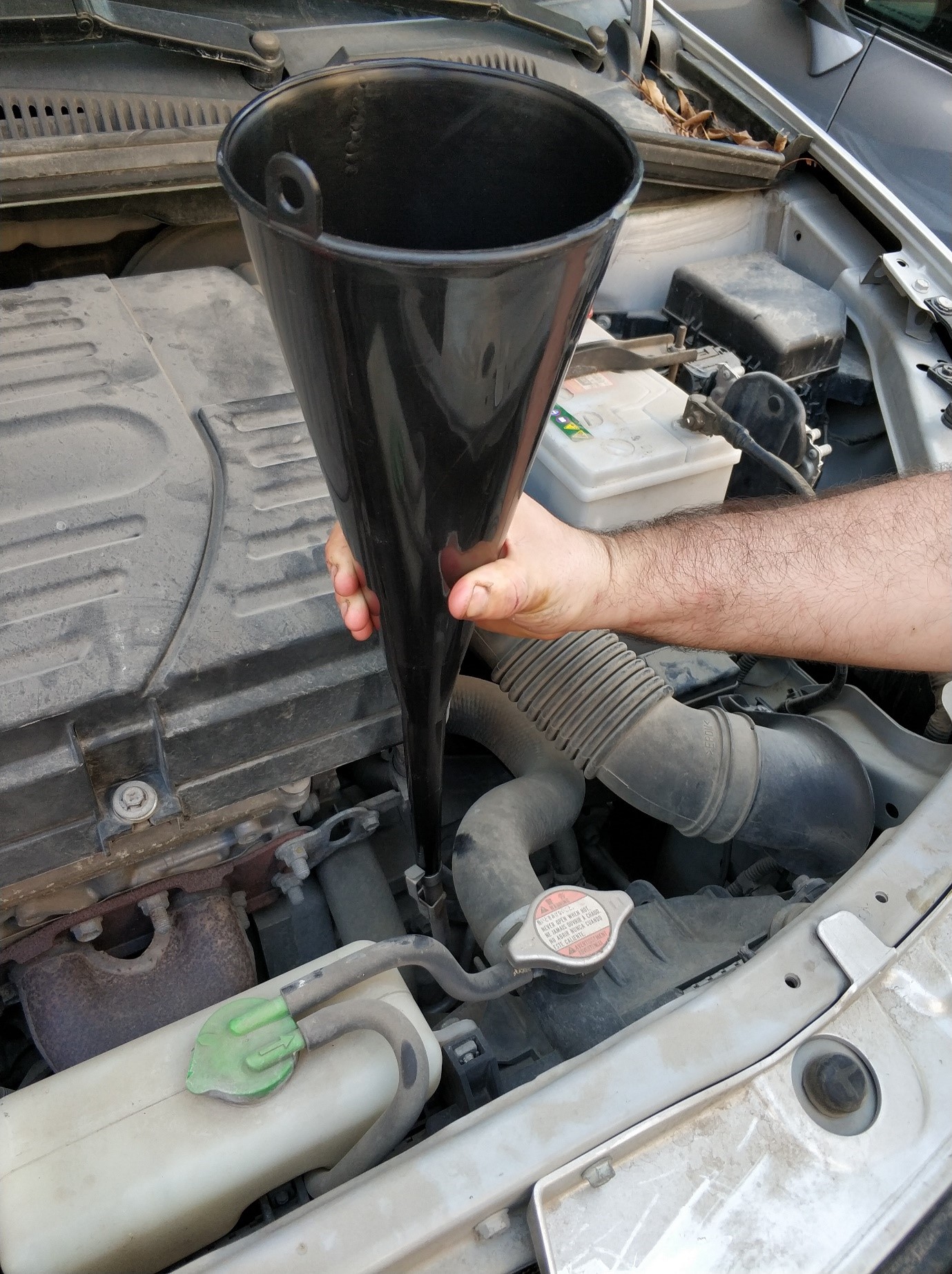 לאחר מכן מילאנו את הכמות הנדרשת דרך פתח המילוי הרגיל (כ-3.9 ליטר) של שמן יורול 5W30.