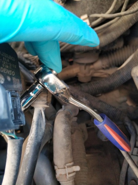 לאחר הסרת הכיסוי, עם שטוח קטן או עם ראצ'ט ובוקסה 8 משחררים את הבנד שבתחתית בית החיישן.